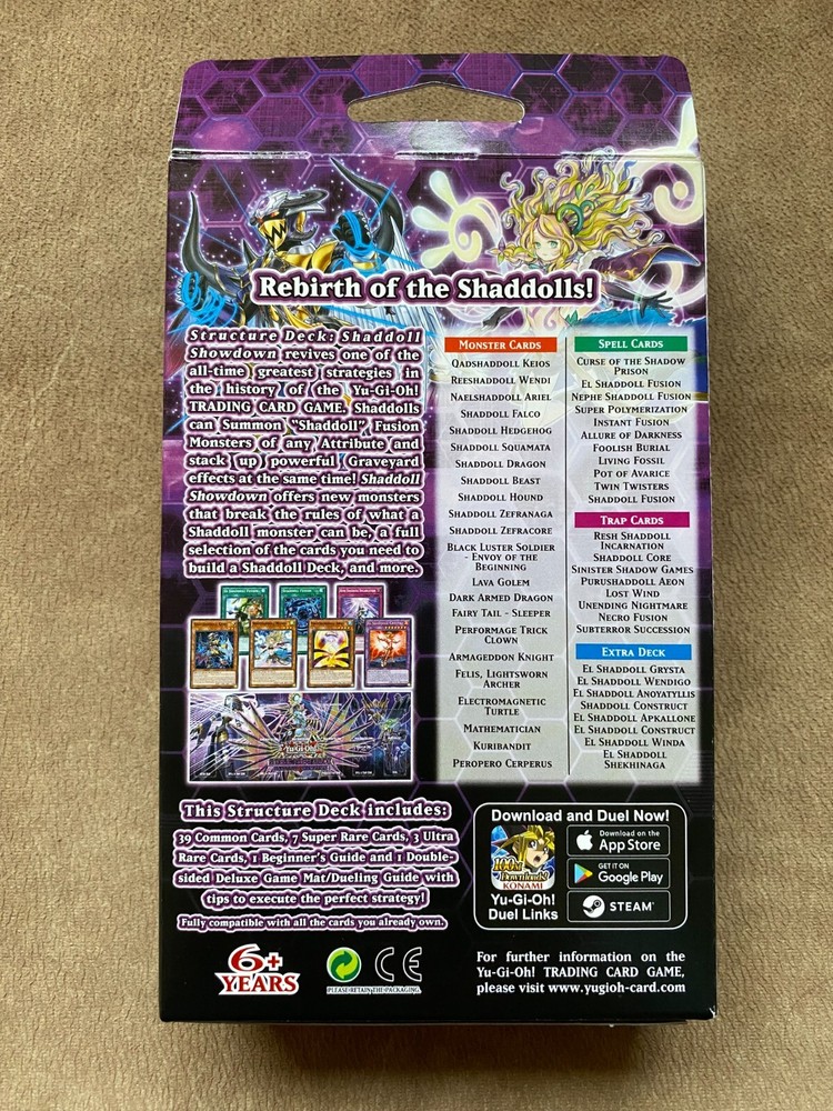 You are getting the factory sealed Shaddoll Showdown official Yu-Gi-Oh! structure deck from the picture. There is some wear on the box, but the cards should be fine....