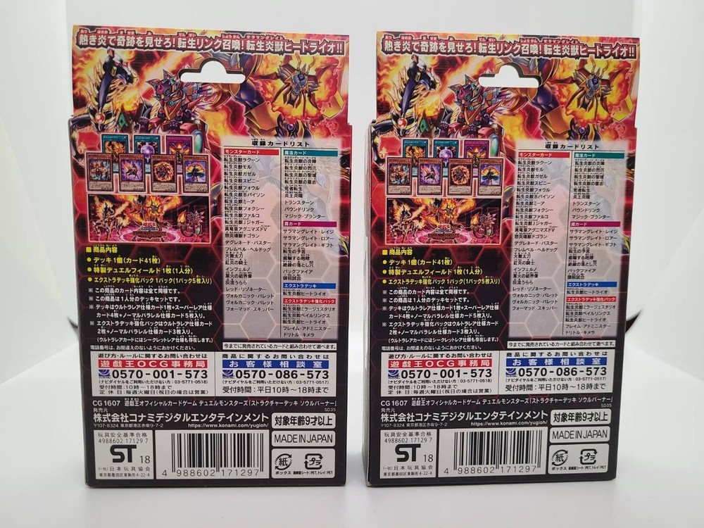 Yu-Gi-Oh! 『Structure Deck Soul Burner』 1st Edition, Japanese, OCG set of 2 Description Grade: Brand new Appearance of the item Beautiful as photos. Please check on the photos for detailed condition of the product. Item Size Length 3cm/1.2in Width 9cm/3.5in Height 15.5cm/6.1in If you have any question or concern, please do not hesitate to contact me. Thank you for visiting. Please Note for International Buyers We ship items from Japan. Import duties, taxes (example VAT, GST), and charges are not included in the item price or shipping cost. These charges are the buyer's responsibility. Please check in advance about those additional costs in your customs office before buying. Generally, those additional costs will be charged by the carrier when you receive the item. We write the customs declaration correctly. No undervalue. No checkmark gift. Click here and go to my listings!