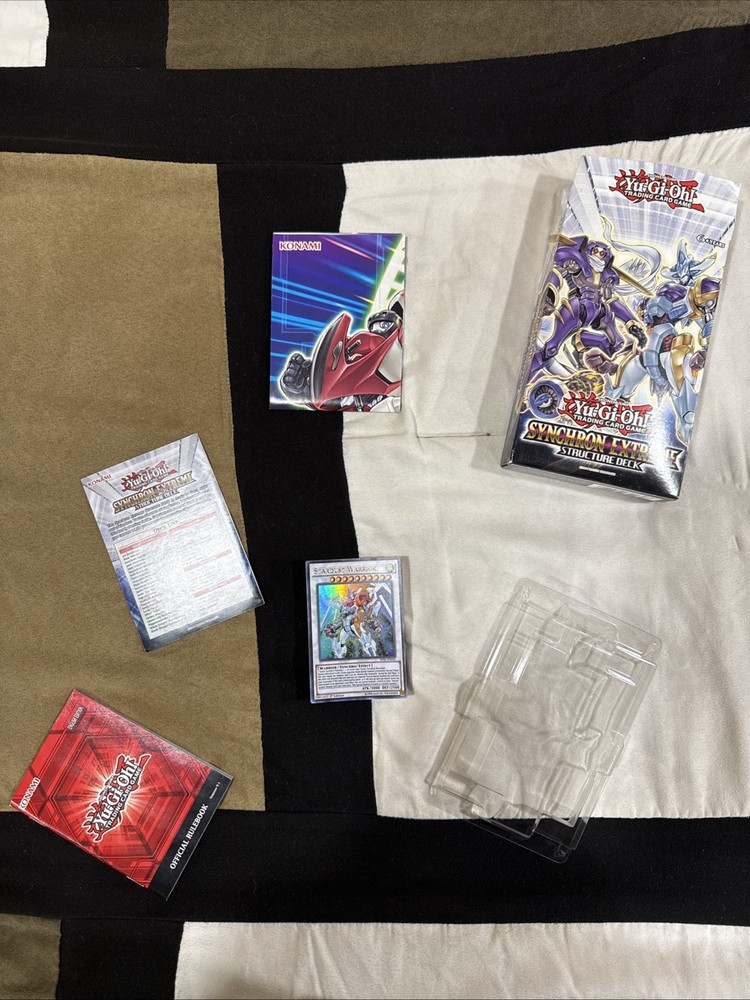 As the photos show, this is an open box complete 1st Edition set of the Yu-Gi-Oh Synchron Extreme Structure Deck. Deck is complete with original box, play mat and paperwork. Cards have never been played, only opened and looked at.