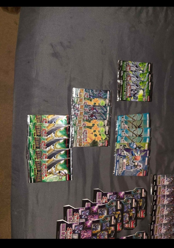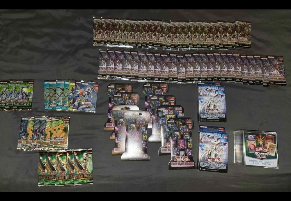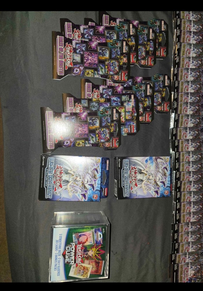 Everything is factory sealed. Tactical Masters 1st edition x24 sealed packs Dimension Force 1st edition x22 sealed packs Yugioh power cube x1 Blue eyes white destiny structure decks x2 Maze of the Master x8 Star pack 2013 x6 Battles of legend monstrous revenge x6 Duelist nexus x3 Battle pack 3 monster league x 7