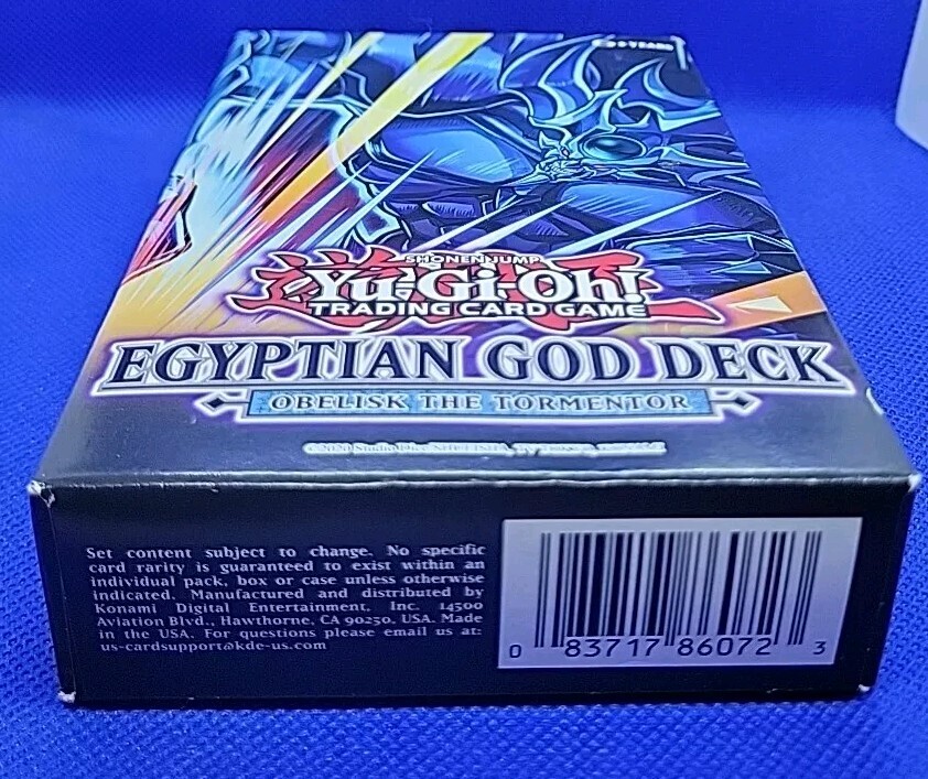 Unleash the power of the ancient Pharaohs with the Yu-Gi-Oh! TCG Egyptian God Deck: Obelisk The Tormentor. This unopened set is a must-have for collectors and duelists alike, featuring the iconic Obelisk in all its formidable glory. The deck comes as a starter deck with a structure deck configuration, ensuring you're equipped to battle right out of the box. Crafted by Konami, this deck is produced with high-quality card stock and metallic foil accents, giving it a premium feel. It's designed for players aged 12 years and up, but vintage enthusiasts will appreciate the nostalgic value regardless of age. The deck is presented in English and comes as a 1st Edition, making it a valuable addition to any Yu-Gi-Oh! TCG collection.