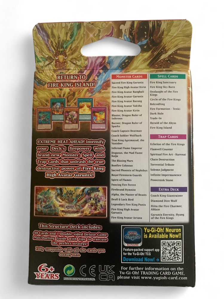 DETAILS - Ages 6+ - Includes 1 Yu-Gi-Oh TCG Fire Kings Reloaded Structure Deck (48 cards) - 1 Deluxe, double-sided game mat and Dueling Guide included)