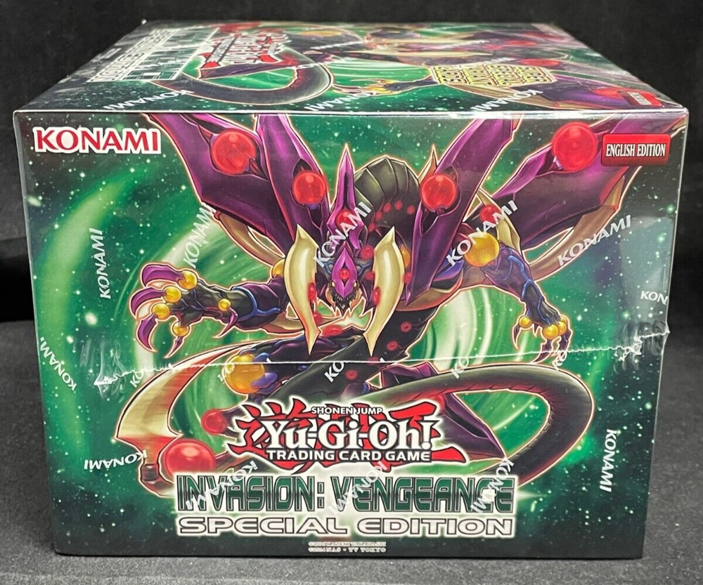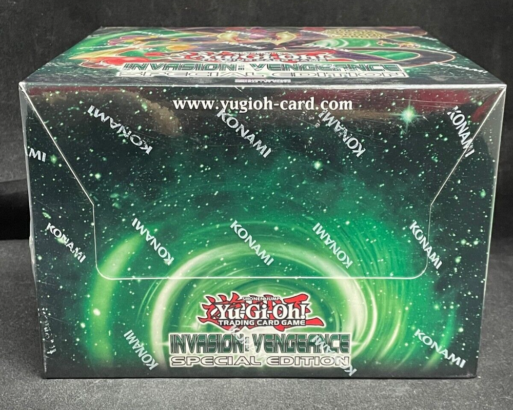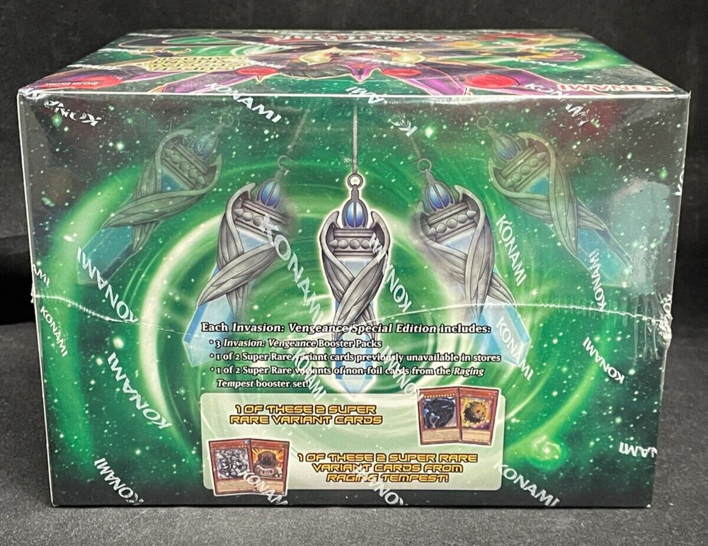 In Hand!! Ready to Ship!! Yu-Gi-Oh! TCG: Invasion Vengeance Special Edition Display Case (10 Mini Boxes per Case) (English Edition) Genre Yu-Gi-Oh! TCG Type Display Case Condition BRAND NEW Description: Each Display Case comes with 10 Mini Boxes per Case. Each Mini Box comes with 3 Invasion: Vengeance Booster Packs 1 of 2 Super Rare Variant Cards previously unavailable in stores 1 of 2 Super Rare Variants of non-foil cards from the Raging Tempest Booster Set. Region information English Edition