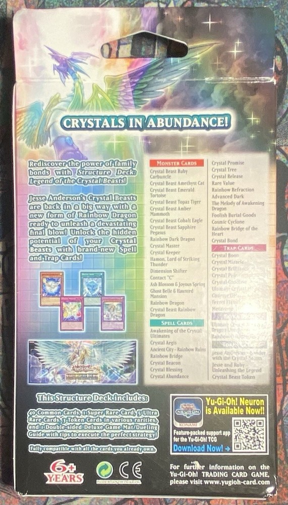 This Yu-Gi-Oh! TCG deck is a must-have for any collector or player. The Legend of the Crystal Beasts Structure Deck features a unique set of cards with stunning artwork and powerful abilities. The deck includes a variety of creatures, including beasts and crystals, and is perfect for anyone who loves the game. With its unique features and impressive collection, this deck is sure to impress both beginners and experienced players alike. So why wait? Add this amazing Yu-Gi-Oh! TCG deck to your collection today!