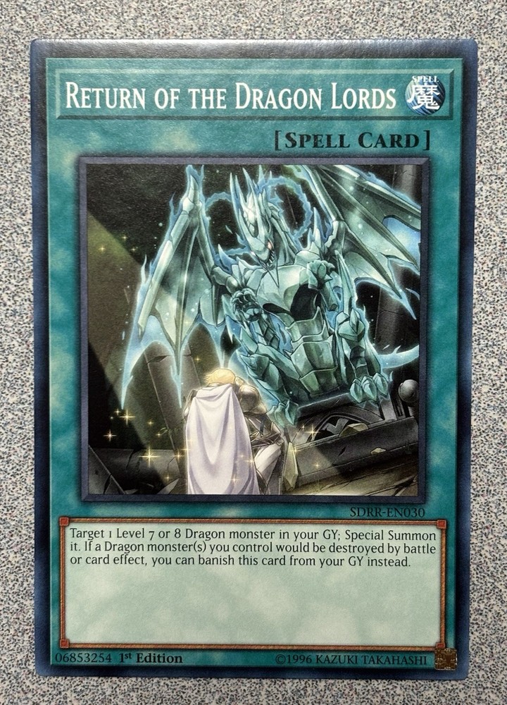 This Yu-Gi-Oh! TCG card is a must-have for any collector. From the Return of the Dragon Lords set, this Lord-type creature card features the spell-normal card type and is a first edition. Its card number is SDRR-EN030, and it belongs to the Rokket Revolt structure deck. The card has a condition type of 4000 and a card condition of 400010. With its powerful features and unique design, this card is a valuable addition to any deck. Get your hands on this rare card now and enhance your collection.