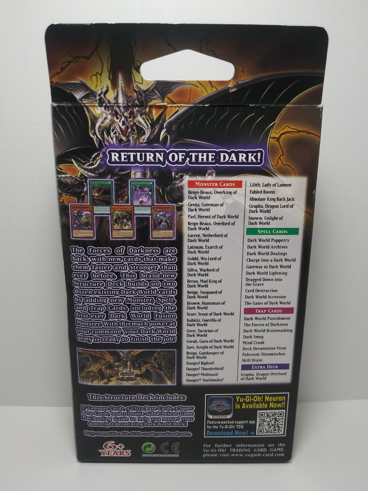 The box is sealed and is great condition. This deck contains 37 common cards, 5 ultra rare cards, 3 super rare cards, and 1 double-sided deluxe game mat/dueling guide.