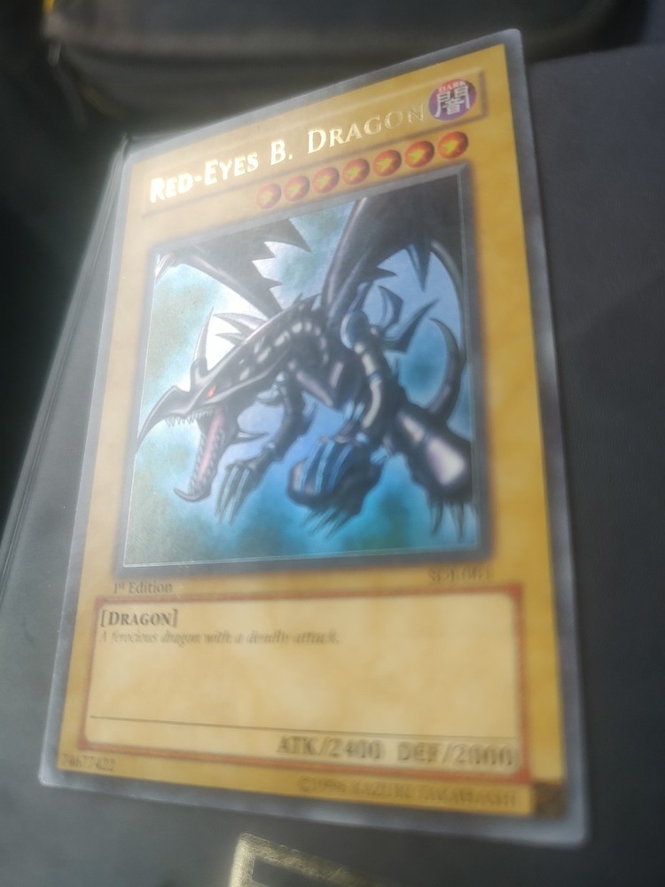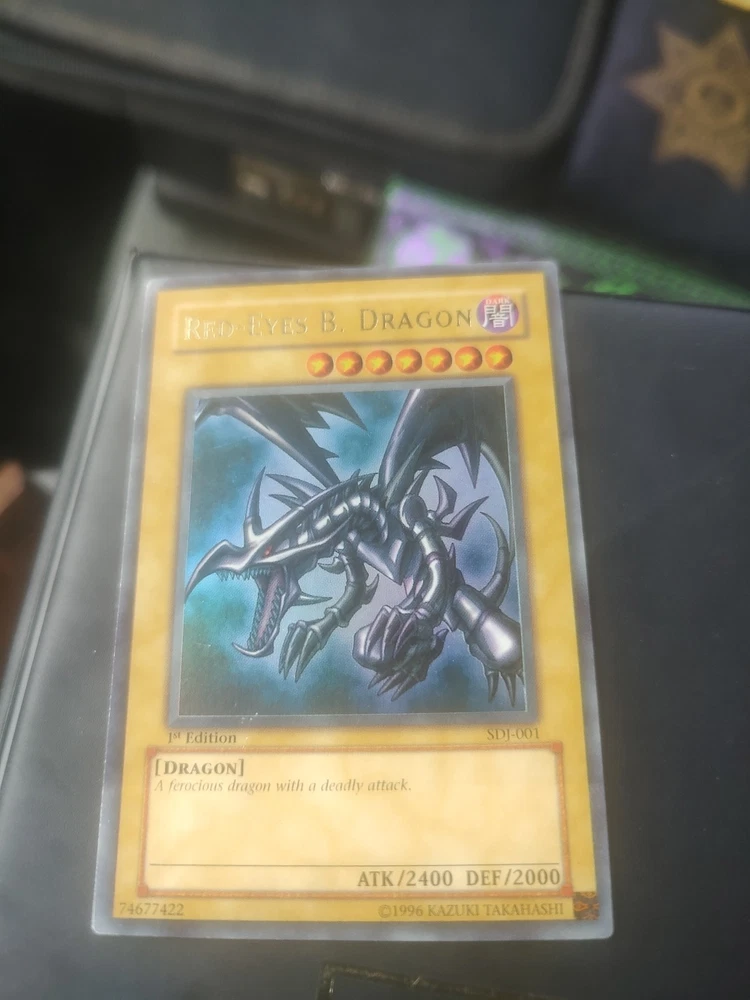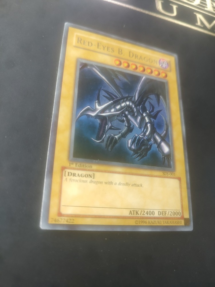 The Yu-Gi-Oh TCG Ultra Rare Red-Eyes B. (Black) Dragon card is a highly sought-after collectible for fans of the game. This 1st Edition card from the Structure Deck Joey set features the iconic character Red-Eyes Black Dragon, a powerful Dark attribute Dragon type creature. With a holo finish and normal card type, this English language card is in near mint condition or better, making it a valuable addition to any Yu-Gi-Oh card collection. Manufactured by Konami, this card is a must-have for collectors and players looking for a rare and unique card for their decks.
