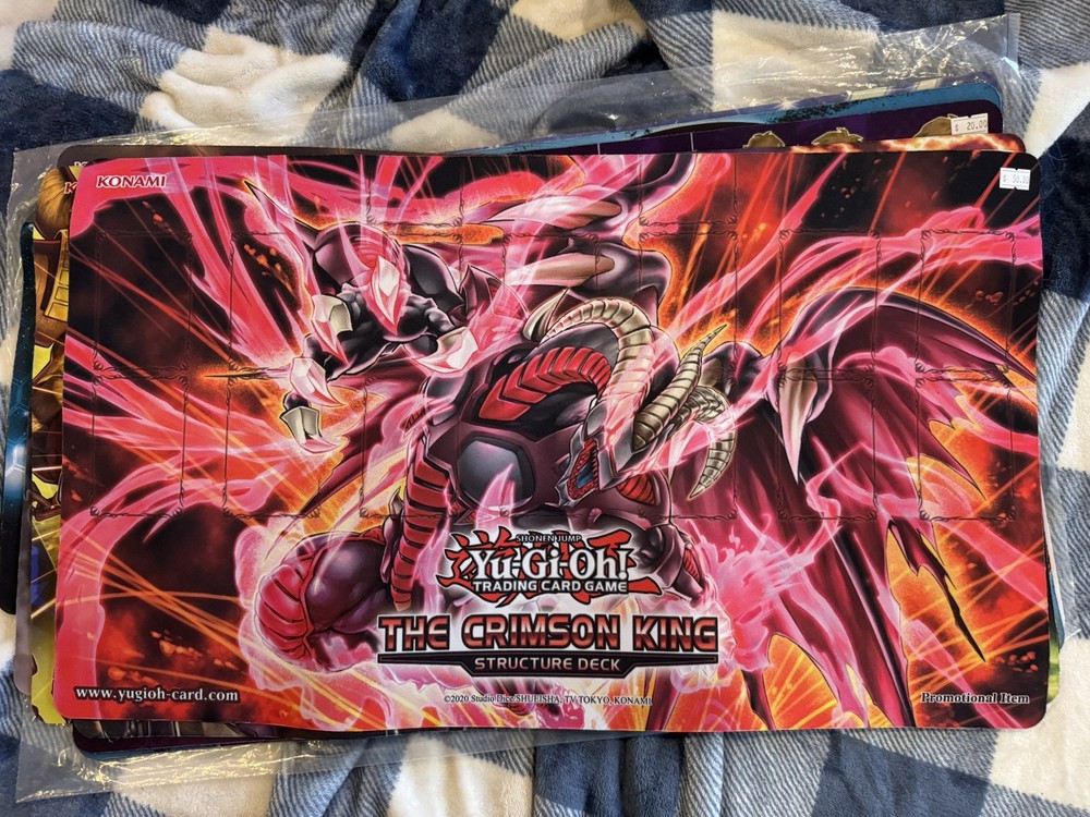 The Yu-Gi-Oh! The Crimson King Structure Deck Playmat is a red playmat specifically designed for the Yu-Gi-Oh! collectible card game. Featuring the iconic Yu-Gi-Oh! TV show franchise, this playmat is perfect for fans of the game who want to enhance their gaming experience with a touch of style and nostalgia. The unused condition ensures that this playmat is in like-new quality, making it a great addition to any Yu-Gi-Oh! collection.