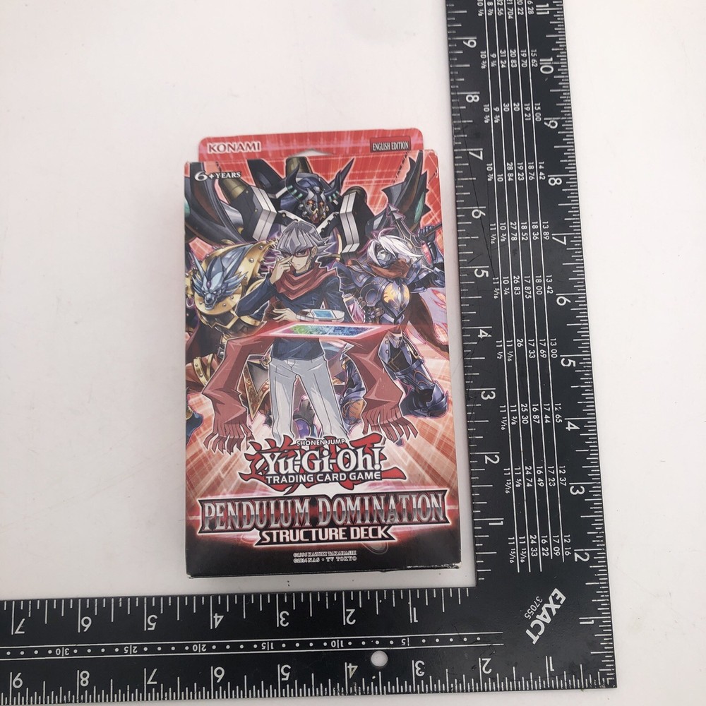 Yu-Gi-Oh! Trading Card Game Pendulum Domination Structure Deck 1st Edition. Exactly what is pictured is what you'll be receiving. Please refer to all photos before purchasing. Before FILING A CLAIM, LEAVING NEUTRAL OR NEGATIVE FEEDBACK please contact me directly so that I can try to solve the issue at hand. If there is something wrong with the item please save all packaging and the original mailer box that it was sent in. We accept returns if item is not as describe in the description or shown in the pictures. After I receive the item back...I will send a full refund for the item. We are happy to answer ANY questions. I will be glad to send more picture. I am no expert on some items and cannot guarantee anything about the piece beyond what I can physically see.Shipping within 24-48 hours after payment bin 6