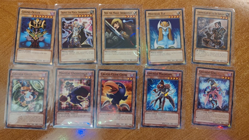 I don't play YuGiOh anymore, so getting rid of everything YuGiOh I own. That said, I take care of the things I own, so through the pictures above you see they're in NM condition, sleeved, the whole 9....