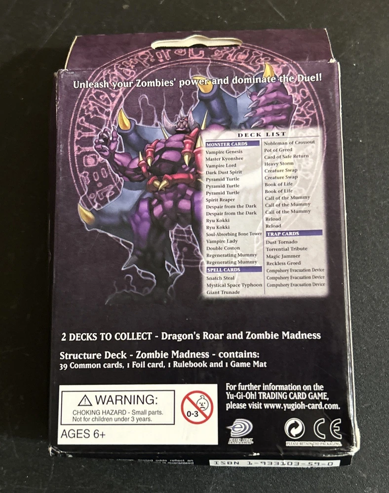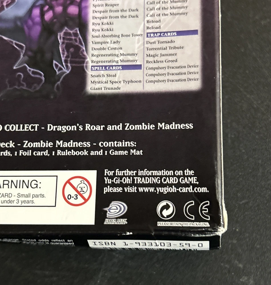 The YuGiOh Zombie Madness Structure Deck, 1st Edition, English, New & Sealed is a vintage collectible card game product manufactured by Konami in the United States. This deck features a Dragon archetype with 40 cards, including the character Seto Kaiba. The deck is designed for ages 6 and up and is part of the Yu-Gi-Oh! TCG game. This 1996 release is made of card stock and includes features like booster packs, structure decks, and starter decks, making it a sought-after item for collectors and players alike. 1 trading card game structure deck as pictured and described. There is shelf wear on the box but it is still sealed - please see pictures for closer details! This item will ship fast and secured at the time of your purchase! If you have any additional questions or concerns about this item, please feel free to contact me directly! Thanks for looking!