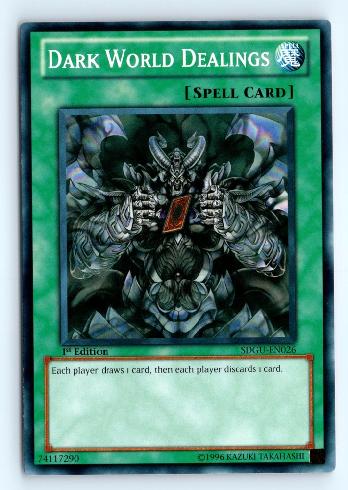 Cards 20$ or Less in Price Will be shipped in a penny sleeve and in a top loader or Semi Rigid card holder by Ebay standard envelope. Please check out the scans for a good look at the condition. This is a example of a Structure Deck: Gates of the Underworld #SDGU-EN026 Dark World Dealings . Please check out our other listings for more great cards.