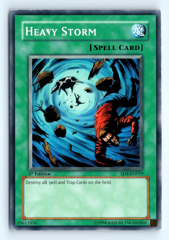 Cards 20$ or Less in Price Will be shipped in a penny sleeve and in a top loader or Semi Rigid card holder by Ebay standard envelope. Please check out the scans for a good look at the condition. This is a example of a Structure Deck: Fury from the Deep #SD4-EN019 Heavy Storm . Please check out our other listings for more great cards.