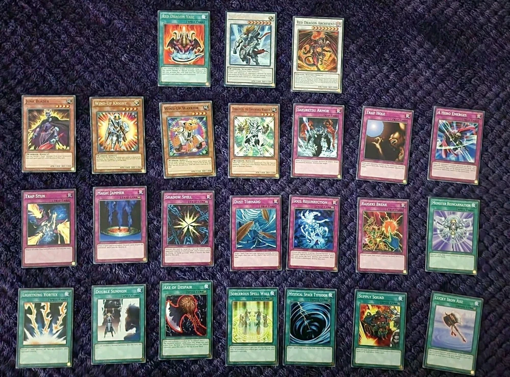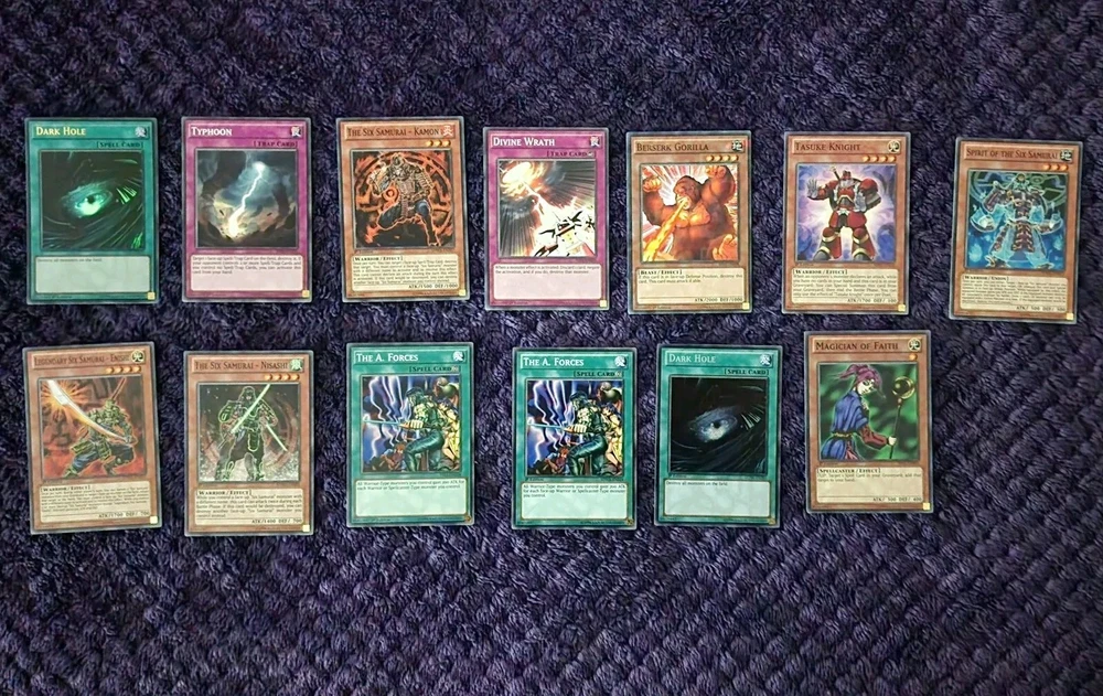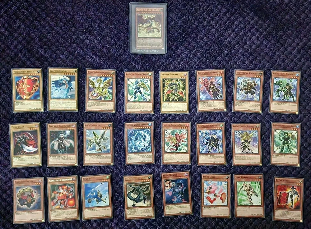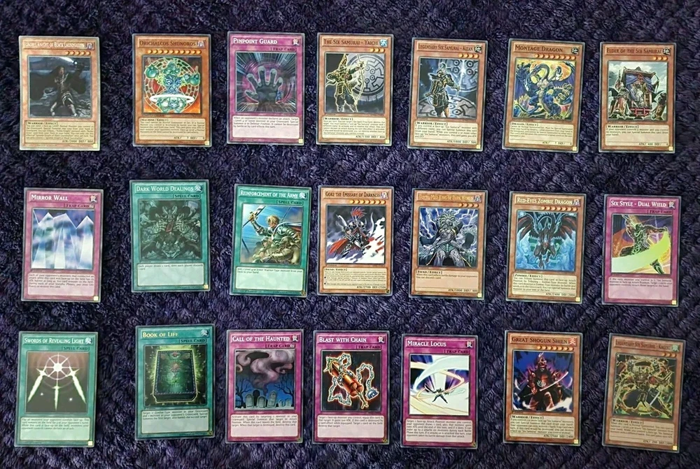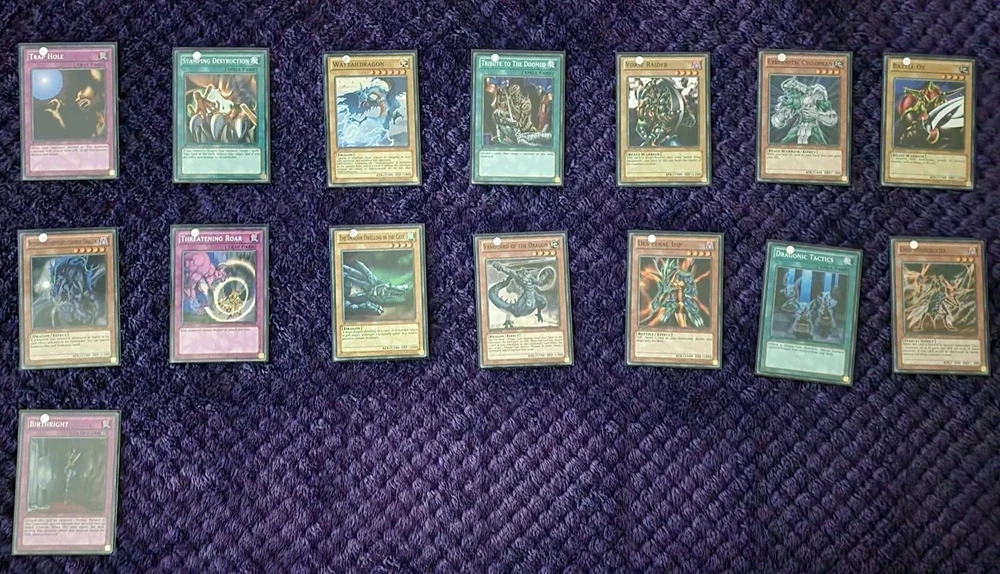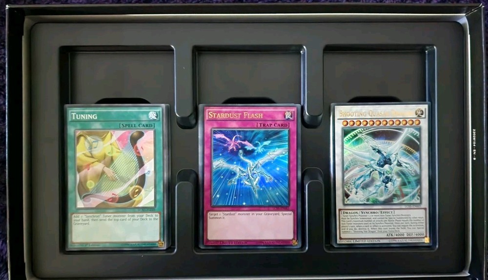 This is a Yu-Gi-Oh! TCG card collection featuring cards from 2013 with unique art and limited edition features. The collection includes cards of characters such as Yami Yugi, Seto Kaiba, and Joey Wheeler in English language. The cards may vary in type, including Ritual, Spell, Trap, Synchro, Xyz, and Fusion, with finishes like Regular, Holo, and Foil. This collection offers a variety of card types and editions for fans and collectors to enjoy. Here is a full list of the items [cards/tin/box] included: IGNOBLE KNIGHT OF BLACK LAUNDSALLYN [NKRT-EN005] ORICHALCOS SHUNOROS [GLD4 -EN029] PINPOINT GUARD [BP03 – EN228] THE SIX SAMURAI – YAICHI [SDWA – EN006] LEGENDARY SIX SAMURAI – KIZAN [SDWA – EN016] MONTAGE DRAGON [WGRT – EN023] ELDER OF THE SIX SAMURAI [SDWA – EN021] MIRROR WALL [LCJW – EN107] DARK WORLD DEALINGS [LCJW – EN251] REINFORCEMENT OF THE ARMY [YS14 – ENA09] GORZ THE EMISSARY OF DARKNESS [BP01 – EN014] BRON, MAD KING OF DARK WORLD [LCJW – EN244] RED EYES ZOMBIE DRAGON [LCJW – EN206] SIX STYLE- DUAL WIELD [SDWA – EN040] SWORDS OF REVEALING LIGHT [YS14 – ENA11] BOOK OF LIFE [LCJW – EN211] CALL OF THE HAUNTED [YS14 – ENA13] BLAST WITH CHAIN [BP03 – EN194] MIRACLE LOCUS [BP03 – EN213] GREAT SHOGUN SHIEN [SDWA – EN009] GRANDMASTER OF THE SIX SAMURAI [SDWA – EN002] LEGENDARY SIX SAMURAI – KAGEKI [SDWA – EN018] SUPER RUSH RECKLESSLY [BP03 – EN219] RHINOTAURUS [BP03 – EN076] MIRROR FORCE [YS14 – ENA12] MAGIC CYLINDER [YS14 – ENA14] TREE OTTER [BP03 – EN062] INJECTION FAIRY LILY [YS14 – ENA07] JAIN, LIGHTSWORN PALADIN [BP03 – EN042] MONSTER TAMER [LCJW – EN222] MEZUKI [BP03 – EN046] ENRAGED BATTLE OX [BP03 – EN011] CHAMBERLAIN OF THE SIX SAMURAI [SDWA – EN001] METALMORPH [LCJW – EN075] SCAPEGOAT [LCJW – EN066] BLUE FLAME SWORDSMAN [LC04 – EN001] THE SIX SAMURAI – IROU [SDWA – EN008] PHOENIX GEARFRIED [LCJW – EN051] THE SIX SAMURAI – YARIZA [SDWA – EN003] DARK BLADE THE CAPTAIN OF THE EVIL WORLD [ORCS – EN034] DRILLROID [BP02 – EN038] RIRYOKU [BP02 – EN142] THE SIX SAMURAI – ZANJI [SDWA – EN004] DARK HOLE [YS14 – ENA10] TYPHOON [BP03 – EN235] THE SIX SAMURAI – KAMON [SDWA – EN007] DIVINE WRATH [YS14 – ENA15] BERSERK GORILLA [BP03 – EN008] TASUKE KNIGHT [BP02 – EN110] SPIRIT OF THE SIX SAMURAI [SDWA – EN012] LEGENDARY SIX SAMURAI – ENISHI [SDWA – EN017] THE SIX SAMURAI – NISASHI [SDWA – EN005] THE A. FORCES [YS14 – ENA08] THE A. FORCES [YS14 – ENA08] DARK HOLE [LCJW – EN283] MAGICIAN OF FAITH [BP02 – EN005] SLIFER DER HIMMELSDRACHE [MVP1 – DEG57] STARTER DECK YUGI RELOADED (WITHOUT BOX) SLIFER THE SKY DRAGON [MVP1 – EN057] MILLENNIUM SHIELD [YS14 – EN004] WATTAILDRAGON [YS14 – EN001] AETHER, THE EMPOWERING DRAGON [YS14 – EN011] VENTDRA, THE EMPOWERED WARRIOR [YS14 – EN012] HUNTER DRAGON [YS14 – EN003] RED SPARROW SUMMONER [YS14 – EN018] WHITE TIGER SUMMONER [YS14 – EN019] GREEN TURTLE SUMMONER [YS14 – EN020] DARK BLADE [YS14 – EN005] TWILIGHT ROSE KNIGHT [LC5D – EN085] BRI SYNCHRON [LC5D – EN019] MYTHIC WATER DRAGON [SHSP – EN011] ARNIS, THE EMPOWERED WARRIOR [YS14 – EN013] BLUE DRAGON SUMMONER [YS14 – EN017] GOLDEN DRAGON SUMMONER [YS14 – EN016] HYDROTORTOISE, THE EMPOWERED WARRIOR [YS14 – EN015] DARK RESONATOR [LC5D – EN057] GENEX ALLY BELLFLAME [BP03 – EN082] GYROID [BP03 – EN016] VANGUARD OF THE DRAGON [BP03 – EN60] SNIPE HUNTER [LCJW – EN265] SONIC CHICK [LC5D – EN001] JUNK FORWARD [LC5D – EN024] EXTRA VEILER [LC5D – EN064] JUNK BLADER [LC5D – EN025] WIND – UP KNIGHT [PHSW – EN023] WIND – UP WARRIOR [PHSW – EN022] TERRATIGER, THE EMPOWERED WARRIOR [YS14 – EN014] SAKURETSU ARMOR [YS14 – EN032] TRAP HOLE [YS14 – EN031] A HERO EMERGES [YS14 – EN036] TRAP STUN [LC5D – EN141] MAGIC JAMMER [YS14 – EN039] SHADOW SPELL [YS14 – EN035] DUST TORNADO [YS14 – EN034] SOUL RESURRECTION [YS14 – EN037] RAIGEKI BREAK [YS14 – EN033] MONSTER REINCARNATION [YS14 – EN028] LIGHTING VORTEX [YS14 – EN023] DOUBLE SUMMON [SDGR – EN026] AXE OF DESPAIR [YS14 – EN026] SORCEROUS SPELL WALL [YS14 – EN021] MYSTICAL SPACE TYPHOON [YS14 – EN024] SUPPLY SQUAD [YS14 – EN022] LUCKY IRON AXE [YS14 – EN027] RED DRAGON VASE [LC5D – EN077] LIGHTING WARRIOR [LC5D – EN042] RED DRAGON ARCHFIEND [LC5D – EN069] BLACKWING – NOTHUNG THE STARLIGHT [PGL2 – EN013] ELEMENTAL HERO PRISMA [PGL2 – EN072] DRAGOCYTOS CORRUPTED NETHERSOUL DRAGON [PGL2 – EN014] NUMBER 14: GREEDY SARAMEYA [PGL2 – EN017] MATHEMATICIAN [PGL2 – EN039] TRAPTRIX DIONAEA [PGL2 – EN041] SOLEM WARNING [PGL2 – EN068] VEIL OF DARKNESS [PGL2 – EN071] ABSOLUTE KING BACK JACK [PGL2 – EN002] NUMBER 21: FROZEN LADY JUSTICE [PGL2 – EN018] TRISTAN, KNIGHT OF THE UNDERWORLD [PGL2 – EN009] RING OF DESTRUCTION [PGL2 – EN063] RIGHT LEG OF THE FORBIDDEN ONE [PGL2 – EN022] MIST BODY [SDSC – EN022] MALEVOLENT NUZZLER [SDSC – EN023] BOOK OF MOON [SDSC – EN030] CRYSTAL SEER [SDSC – EN017] GIANT TRUNADE [SDSC – EN024] FIELD BARRIER [SDSC – EN034] HANNIBAL NECROMANCER [SDSC – EN004] FISSURE [SDSC – EN025] PITCH - BLACK POWER STONE [SDSC – EN036] MAGICAL CITADEL OF ENDYMION [SDSC – EN019] MAGICAL MARIONETTE [SDSC – EN010] DARK RED ENCHANTER [SDSC – EN006] TERRAFORMING [SDSC – EN028] SPELL POWER GRASP [SDSC – EN020] TOWER OF BABEL [SDSC – EN037] DISENCHANTER [SDSC – EN002] MAGICAL PLANT MANDRAGOLA [SDSC – EN012] MAGICIANS UNITE [SDSC – EN021] PITCH - BLACK POWER STONE [SDSC – EN036] MYTHICAL BEAST CERBERUS [SDSC – EN015] MAGIC CYLINDER [SDSC – EN038] MAGICAL BLAST [SDSC – EN031] ENDYMION, THE MASTER MAGICIAN [SDSC – EN001] MAGICAL DIMENSION [SDSC – EN032] MAGICIAN’S CIRCLE [SDSC – EN035] SWORDS OF REVEALING LIGHT [YS14 – ENA11] MEI – KOU, MASTER OF BARRIERS [SDSC – EN016] ROYAL MAGICAL LIBRARY [SDSC – EN013] ENEMY CONTROLLER [SDSC – EN029] MAGE POWER [SDSC – EN027] OLD VINDICT