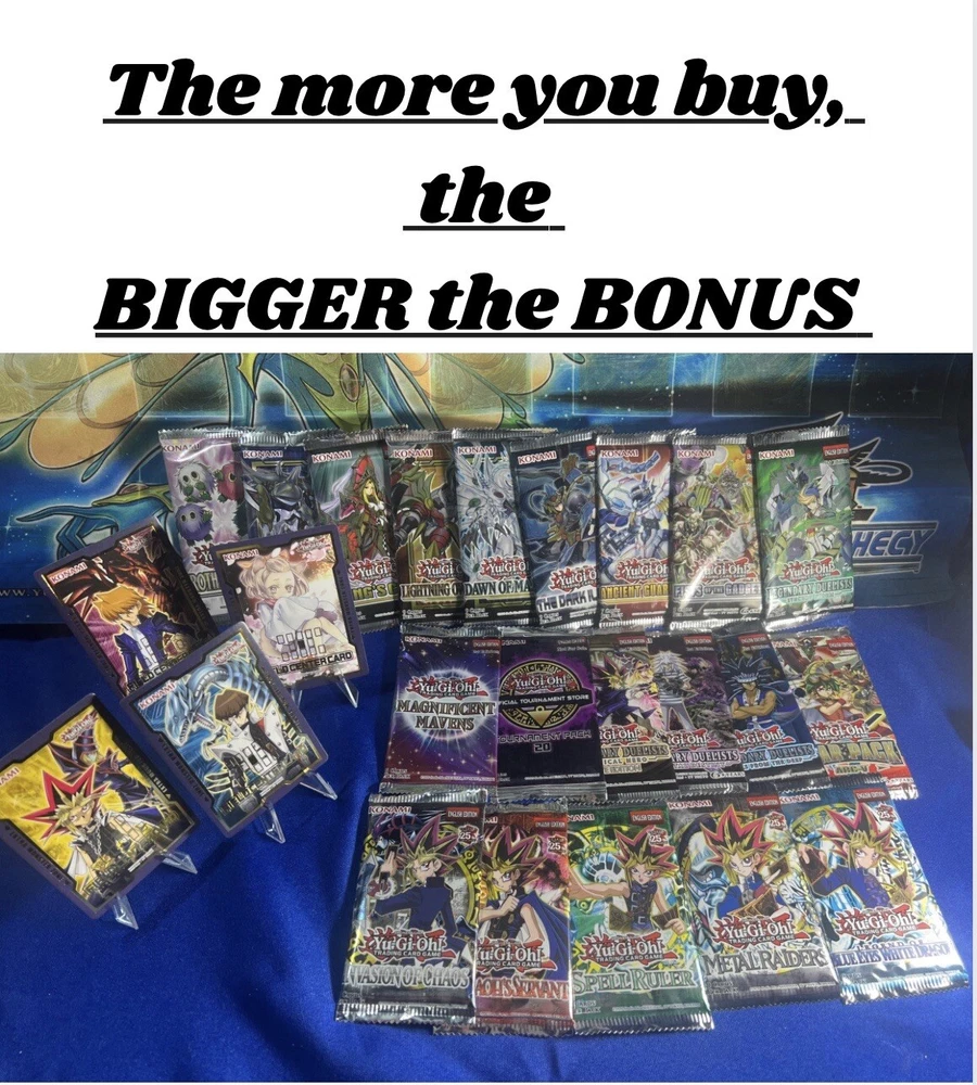Enhance your Yu-Gi-Oh! TCG collection with this amazing lot of (x100 Foil) cards. Featuring a random mix of holographic cards, this lot is perfect for any avid collector, regardless of their experience level. This lot type is a repack, meaning you will receive a random assortment of cards, making each pack a unique surprise. Whether you're a fan of the game or simply looking to add to your collection, this Yugioh mystery pack is a great choice. The lot is in English, vintage and modern, the cards are in excellent state. Don't miss out on this opportunity to add some amazing cards to your collection! *CARDS SHOWN ARE EXAMPLES OF WHAT YOU WILL RECEIVE- No Duplicates in a single lot order* *Card lots from All sets Vintage and Modern, Including Super Rare, Ultra Rare, Secret Rare, Prismatic, Gold Rare and so much more* * The cards in this bulk collection are a mixture of different types, including Ritual, Spell, Trap, Flip, Normal, Tuner, Synchro, Xyz, Effect, Pendulum, Fusion, Link, and Gemini. The pack also includes cards from different attributes, such as Earth, Water, Wind, Dark, Light, and Fire.* - FREE BONUS WITH EVERY PURCHASE - *Bonus Items range in Value between 1$-20$ depending on the size of your order* Includes any of the following: -Booster Pack -Cards Sleeves -Deck Box - Proxy Cards - Blister Pack -Field Center - Extra Foil bonus pack - Stickers -Mega Packs - US BASED SELLER with shipping to all 50 states & Internationally * International buyers responsible for any Import Tax Involved with your purchase* - 1 day processing , Fast shipping with Tracking included, never wait to know when you will receive your purchase - ALL Items packaged and shipped with care Please check out the other items in my store. Disclaimer: We offer free refunds on items in original shipped condition with any additional bonus items included in the return. If deemed tampered with, opened, buyers remorse, misused or substituted, we reserve the right to deny returns under EBay’s return policy. Please have tracking and order# available upon inquiry and do contact us if any issue arises.