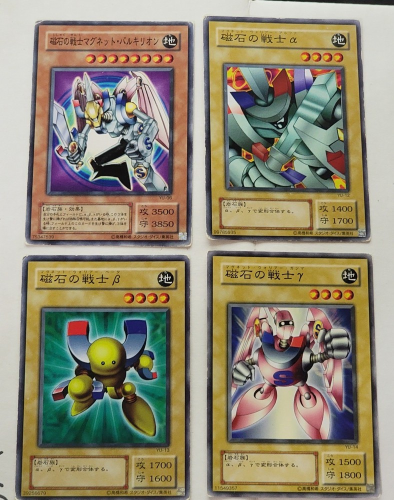 Yugioh Alpha the magnet warrior Beta the magnet warrior Gamma the magnet warrior Valkyrion the Magna Warrior Yugi Structure deck series 2 vintage Japanese Ocg Moderate play edge, corner, and surface wear. valkyrion has a crease. sold as a set