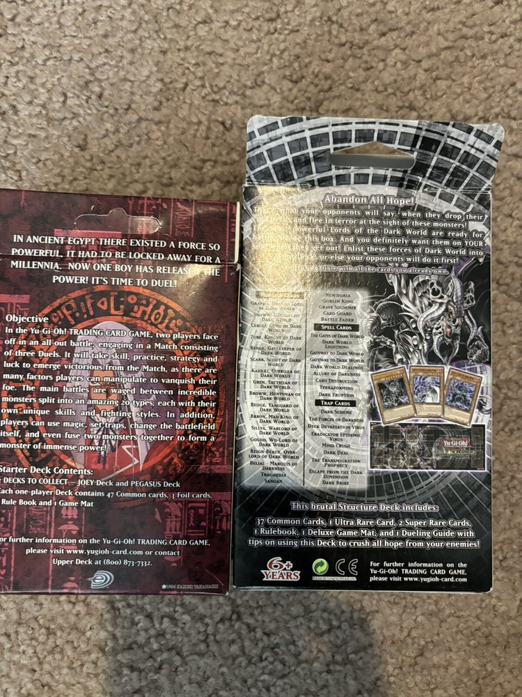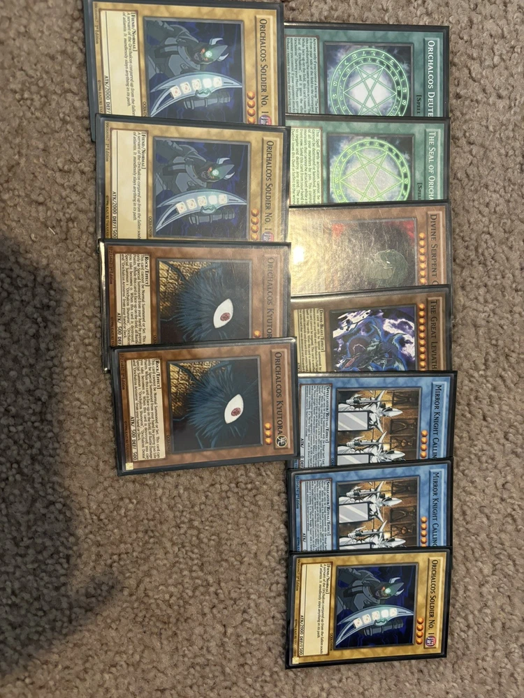This lot contains varying from conditions heavily played to mint, the structure decks are missing some cards but have almost all of them. And the oricalcos deck is NOT REAL it’s a custom deck and a collectible. Hit me up with prices questions and offers.