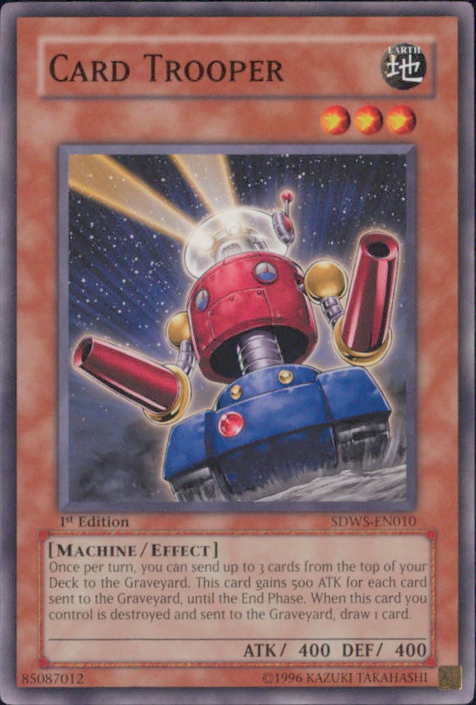 Yugioh Card Trooper #SDWS-EN010 Structure Deck: Warriors' Strike 2009 tcg Yugioh This is the actual picture of the card. PLEASE NOTE THE BACK OF CARDS ARE NOT SHOWN ON PURPOSE. OUR SCANNER FOR WHATEVER REASON CHOPS OFF MOST OF THE CARD ON THIS SPECIFIC CARD AND WOULD NOT BE AN ACCURATE REPRESENTATION OF SAID CARD. SINCE THESE ARE LESS EXPENSIVE CARDS BACK OF PHOTOS WILL BE AT THE REQUEST OF THE SELLER WITHIN A 24 HOUR TURNAROUND TIME. THE BACK OF CARDS ARE IN NM CONDITION UNLESS OTHERWISE NOTED. Thank you! Be sure to check out the rest of our Huge Card collection we have listed in our store. We always have a sale on a cards and sometimes within sets. All cards are between LP - NM unless otherwise noted. Please inspect pics. If you'd like more pictures, shoot us a message and we'll get back to you within 24 hours. Any card listing raw or graded are the actual pictures of that card. At the moment, we do not have a top of the line scanner so some pictures may have scan lines, dust particles, imperfections in the scan in general. We do our best to identify any imperfections on the card and use our best judgement at what we think the grade of the card is. If there are multiple quantities of a card, it'll be a closer depiction of your purchase. If you are unhappy with your purchase, we do allow free returns using the same shipping method you used to receive the card. Please do not hesitate to reach out with any questions you may have. If you do request additional pictures, please keep in mind that there will be a 24 hour turnaround time. How we ship: All graded cards no matter the size or amount will be shipped in a cardboard mailer or box (size depending on order). All single raw cards with a purchase value OVER $20 will be shipped in a sleeve, top loader, and painter's tape inside a bubble/cardboard mailer. Single Raw Cards with a purchase value UNDER $20 will be shipped in a sleeve, top loader, and painter’s tape inside an envelope and shipped using eBays standard envelope service. Anything in between will be TBD depending on the order. Please do not hesitate to reach out with any questions. We’ll be more than happy to answer them. We want to make sure you are happy at the time of purchase and when you receive your cards. Tanks 4 Lookn!