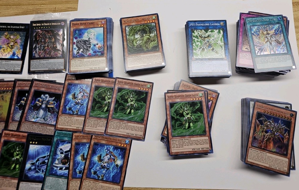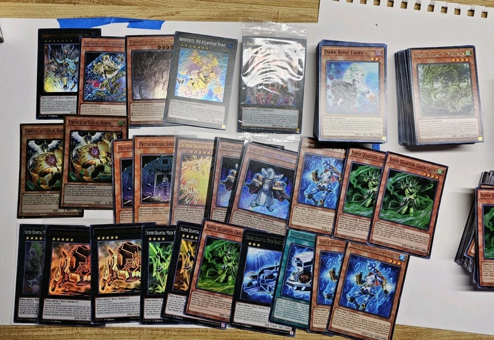 selling a large yugioh Bulk Lot with up 1600 or more Cards, and 2x Albaz Strike Structure Deck (both 1st ed). finally large 7 bulk baggies of yugioh cards. and some extra holo cards. all items will be bubble wrapped and shipped in a box. ( read bottom as well please.) all cards in the bags are mixed Rarities lots of commons and Holos cards. also includes super Quantal Deck core 2x Super Quantal Mech Beast Magnaliger WIRA-EN036 Ultra Rare 1st Ed Yugioh Lightly Played. 1x Super Quantal Mech King Great Magnus - WIRA-EN037 - 1st Ed Secret Rare Modernly played. and some other cards. 1x firewall dragon darkfluid - neo tempest treahertz (secret rare form mega tins pack) 1x maliss Q hearts cryper (ultra rare) 1x Maliss Q white binder (super rare) 1x Maliss Q red rasom (super rare) 1x maliss P dormouse (super rare) 1x maliss P chessy cat (super rare) 1x maliss C GWC-06 (super rare) 1x maliss C TB-11 super rare) Selling a lot of mixed cards mostly of Majespecter and T.G cards. There are 18 cards listed. The binder will be shipped in a bubble mailer. all cards should be lightly played. Cards listed: 18 2x majespector draco - ryu (ultra rare) 2x majespector raccoon - bunbuku (ultra rare) form mega tin 1x majespector orthus - nue (secret rare) 1x majespector fox - kyubi (common) 3x T.G. wonder magician (secret rare) 3x T.G. star guardian (ultra rare) 3x T.G. trident launcher (secret rare) 3x T.G. cyber magician (secret rare)total. All cards are mixed rarity's. The card will be shipped in a bubble mailer. The listed 14 cards: 1x Overload fusion (ultimate rare, unlimited and damaged.) 1x judgement the dragon of Heven (JUMP PROMO ultra rare) 1x terraforming (secret rare, unlimited) 1x heavy storm (common, 1st edition) 1x trap dustshooot (common, lightly played and unlimited) 1x card destruction (super rare, damage and unlimited) 1x giant trunade (common, 1st edition and damaged) 2x last will (common, unlimited and damaged) 1x snatch steal (common, 1st edition and lightly played)