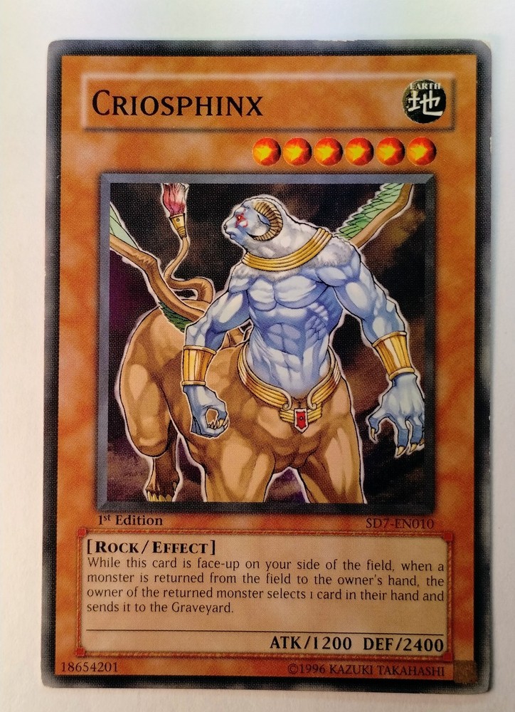 Yugioh Criosphinx SD7-EN010 1st Edition Near Mint This card is in Near Mint condition. Common card from the Structure Deck: Invincible Fortress set.