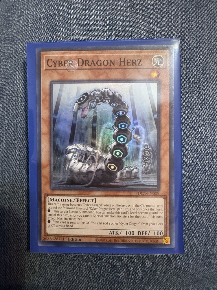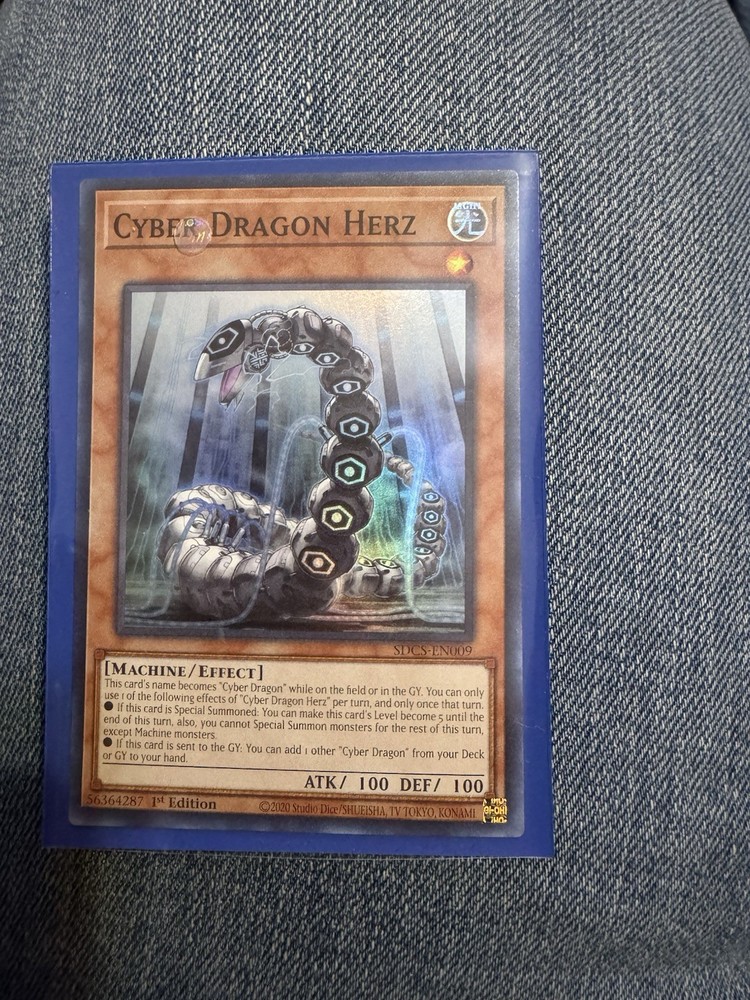 The Yugioh! Cyber Dragon Herz (Super) (SDCS-EN009) is a highly sought-after collectible card from the Yu-Gi-Oh! TCG. This English-language card features a Machine Creature Type with both a Defense/Toughness and Attack/Power of 100. Being a Super Rare 1st Edition from the Structure Deck: Cyber Strike set, manufactured by Konami in 2021, this card is a valuable addition to any collector's deck. With its unique attributes and superior stats, Cyber Dragon Herz is a must-have for fans of the Yu-Gi-Oh! franchise. This card will also include a sleeve and as well as 3 cards at random for free.