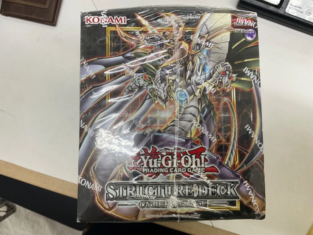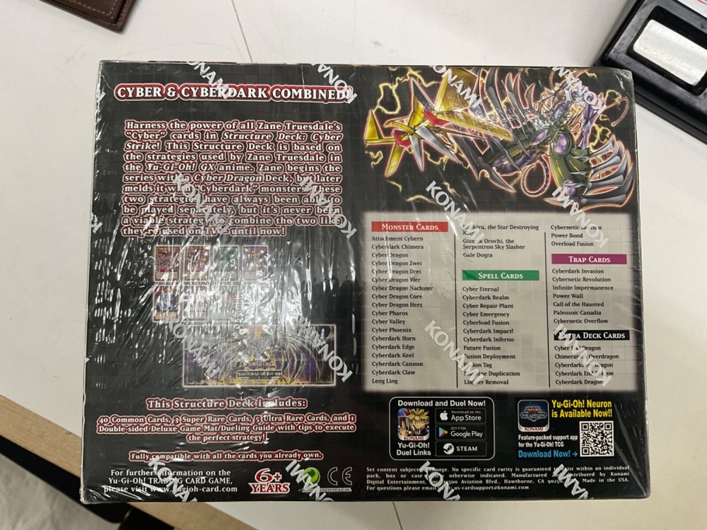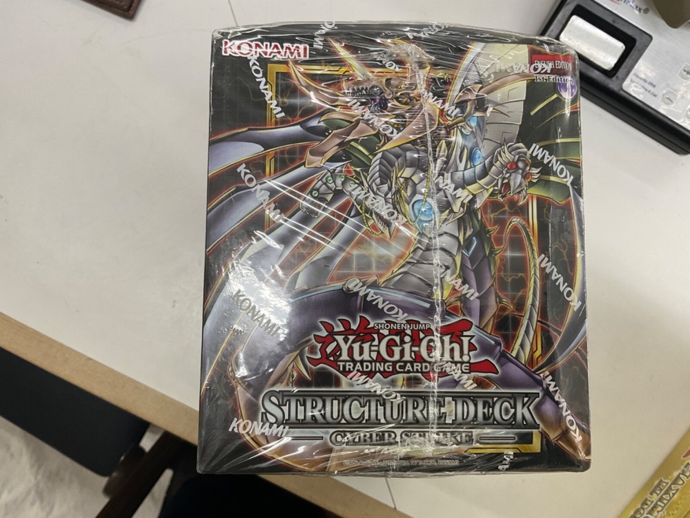 The "Yugioh Cyber Strike Structure Deck" is a standard-sized deck for the Yu-Gi-Oh! TCG featuring cards from the Yugi set. This deck is centered around the Cyber Dragon archetype and comes in a display box that is factory sealed with 1st Edition cards. Manufactured by Konami in 2021, this English language deck is designed for players aged 6 and up, making it suitable for both beginners and experienced players looking to enhance their collection with new cards and strategies.