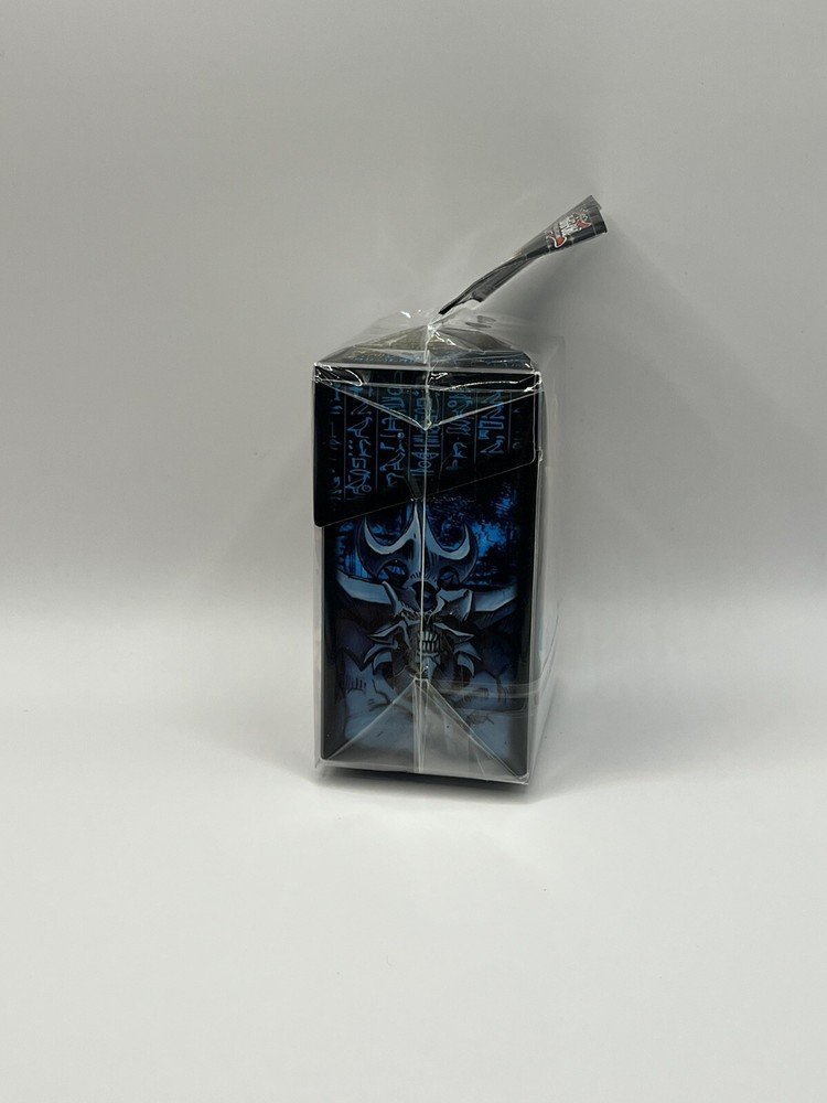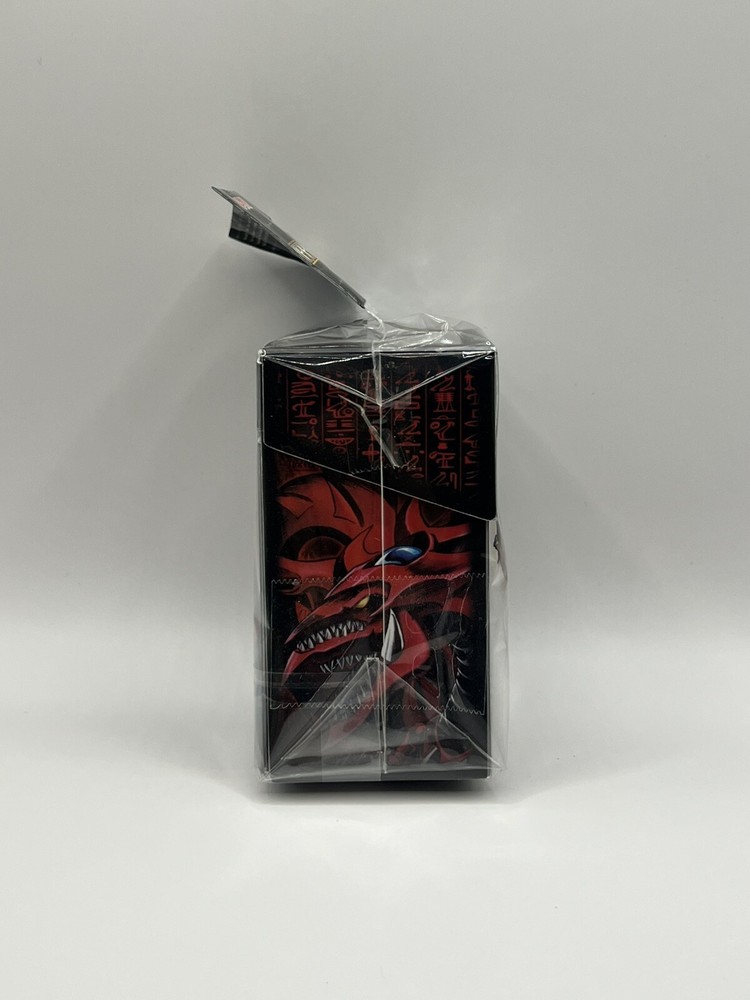 A vintage Yu-Gi-Oh! deck box featuring the iconic Egyptian God Cards—Slifer the Sky Dragon, Obelisk the Tormentor, and Ra—makes for a striking and nostalgic piece. This deck box combines the powerful imagery of these legendary monsters with a classic design, making it a must-have for any collector or duelist who appreciates the history and significance of these cards in the Yu-Gi-Oh! universe.