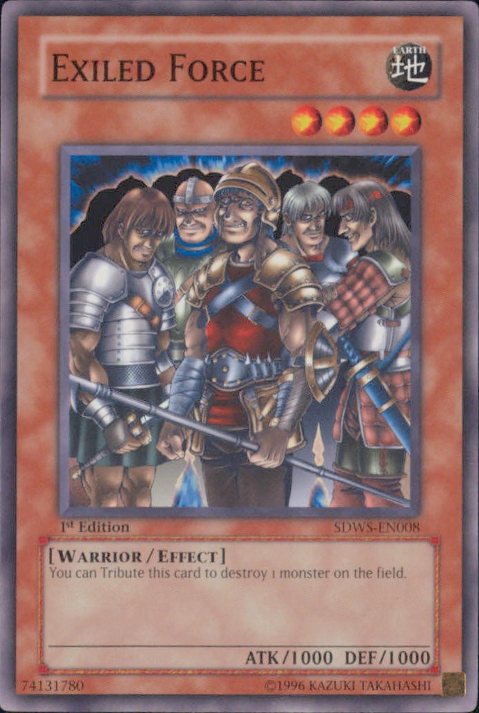 Yugioh Exiled Force #SDWS-EN008 Structure Deck: Warriors' Strike 2009 tcg Yugioh This is the actual picture of the card. PLEASE NOTE THE BACK OF CARDS ARE NOT SHOWN ON PURPOSE. OUR SCANNER FOR WHATEVER REASON CHOPS OFF MOST OF THE CARD ON THIS SPECIFIC CARD AND WOULD NOT BE AN ACCURATE REPRESENTATION OF SAID CARD. SINCE THESE ARE LESS EXPENSIVE CARDS BACK OF PHOTOS WILL BE AT THE REQUEST OF THE SELLER WITHIN A 24 HOUR TURNAROUND TIME. THE BACK OF CARDS ARE IN NM CONDITION UNLESS OTHERWISE NOTED. Thank you! Be sure to check out the rest of our Huge Card collection we have listed in our store. We always have a sale on a cards and sometimes within sets. All cards are between LP - NM unless otherwise noted. Please inspect pics. If you'd like more pictures, shoot us a message and we'll get back to you within 24 hours. Any card listing raw or graded are the actual pictures of that card. At the moment, we do not have a top of the line scanner so some pictures may have scan lines, dust particles, imperfections in the scan in general. We do our best to identify any imperfections on the card and use our best judgement at what we think the grade of the card is. If there are multiple quantities of a card, it'll be a closer depiction of your purchase. If you are unhappy with your purchase, we do allow free returns using the same shipping method you used to receive the card. Please do not hesitate to reach out with any questions you may have. If you do request additional pictures, please keep in mind that there will be a 24 hour turnaround time. How we ship: All graded cards no matter the size or amount will be shipped in a cardboard mailer or box (size depending on order). All single raw cards with a purchase value OVER $20 will be shipped in a sleeve, top loader, and painter's tape inside a bubble/cardboard mailer. Single Raw Cards with a purchase value UNDER $20 will be shipped in a sleeve, top loader, and painter’s tape inside an envelope and shipped using eBays standard envelope service. Anything in between will be TBD depending on the order. Please do not hesitate to reach out with any questions. We’ll be more than happy to answer them. We want to make sure you are happy at the time of purchase and when you receive your cards. Tanks 4 Lookn!