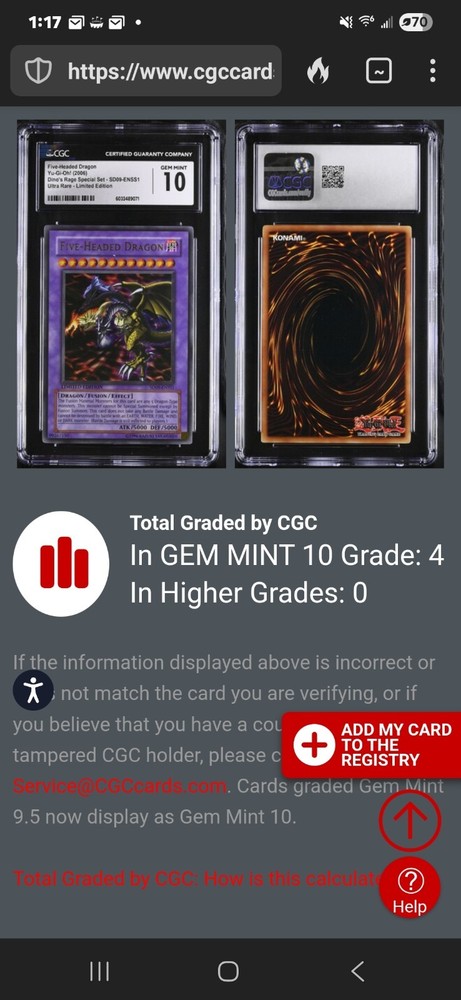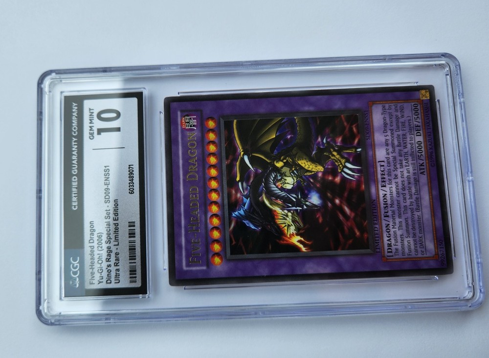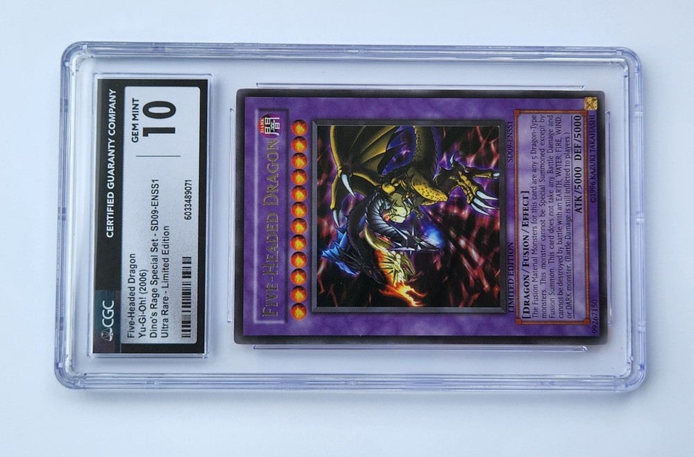 This Five-Headed Dragon card is a must-have for any serious Yu-Gi-Oh! collector. The Ultra Rare holo finish looks incredible, and the Gem Mint 10 grade from CGC guarantees perfect condition. A powerful and iconic monster, this limited edition piece stands out in any deck or display. The quality and rarity make it worth every penny—definitely a prized addition to my collection!