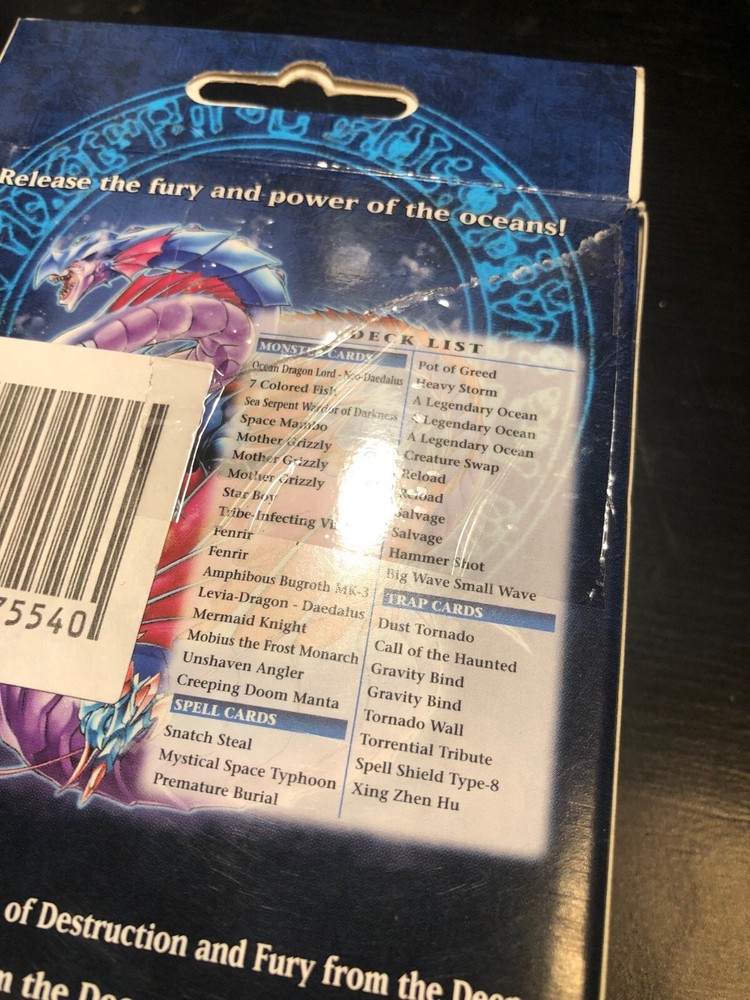 This Yugioh Fury From the Deep deck is awesome! Even though the box had a small tear (already taped up), the cards inside are still sealed and mint—1st edition, too! The stickers are intact, proving everything’s legit. The minor box damage doesn’t affect the cards at all. Super happy with this grab, perfect for collectors or players looking for an unopened deck. Highly recommend!