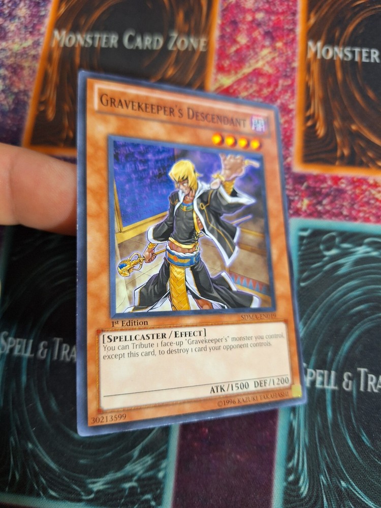 Yugioh Gravekeeper's Descendant #SDMA-EN019 Structure Deck: Marik 2010 tcg Yugioh This is the actual picture of the card. PLEASE NOTE THE BACK OF CARDS ARE NOT SHOWN ON PURPOSE. OUR SCANNER FOR WHATEVER REASON CHOPS OFF MOST OF THE CARD ON THIS SPECIFIC CARD AND WOULD NOT BE AN ACCURATE REPRESENTATION OF SAID CARD. SINCE THESE ARE LESS EXPENSIVE CARDS BACK OF PHOTOS WILL BE AT THE REQUEST OF THE SELLER WITHIN A 24 HOUR TURNAROUND TIME. THE BACK OF CARDS ARE IN NM CONDITION UNLESS OTHERWISE NOTED. Thank you! Be sure to check out the rest of our Huge Card collection we have listed in our store. We always have a sale on a cards and sometimes within sets. All cards are between LP - NM unless otherwise noted. Please inspect pics. If you'd like more pictures, shoot us a message and we'll get back to you within 24 hours. Any card listing raw or graded are the actual pictures of that card. At the moment, we do not have a top of the line scanner so some pictures may have scan lines, dust particles, imperfections in the scan in general. We do our best to identify any imperfections on the card and use our best judgement at what we think the grade of the card is. If there are multiple quantities of a card, it'll be a closer depiction of your purchase. If you are unhappy with your purchase, we do allow free returns using the same shipping method you used to receive the card. Please do not hesitate to reach out with any questions you may have. If you do request additional pictures, please keep in mind that there will be a 24 hour turnaround time. How we ship: All graded cards no matter the size or amount will be shipped in a cardboard mailer or box (size depending on order). All single raw cards with a purchase value OVER $20 will be shipped in a sleeve, top loader, and painter's tape inside a bubble/cardboard mailer. Single Raw Cards with a purchase value UNDER $20 will be shipped in a sleeve, top loader, and painter’s tape inside an envelope and shipped using eBays standard envelope service. Anything in between will be TBD depending on the order. Please do not hesitate to reach out with any questions. We’ll be more than happy to answer them. We want to make sure you are happy at the time of purchase and when you receive your cards. Tanks 4 Lookn!
