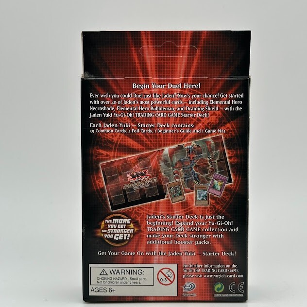 Step into the Duel Academy ring with the Jaden Yuki Unlimited Theme Starter Deck , brand new and factory‑sealed for both aspiring duelists and collectors. Centered on Jaden’s signature Elemental HERO and Neo‑Spacian strategies, this ready‑to‑play deck brings iconic GX‑era combos to your first duel! Key Features: 40‑Card Ready‑to‑Play Deck: Pre‑constructed for instant battles, featuring Jaden’s core cards like “Elemental HERO Neos,” “Contact Fusion,” and a lineup of Neo‑Spacian support monsters for powerful Fusion plays. Premium Rarity Breakdown: Includes 3 Ultra Rare cards and 6 Super Rare cards highlighting Jaden’s signature moves, plus 31 Commons to fuel consistent draws and Fuse‑summons. Signature Fusion Strategy: Utilize “Molecular Fusion” and “Miracle Contact” to access your favorite Elemental HERO fusions—like “Elemental HERO Flame Wingman” and “Elemental HERO Tempest.” Official Konami Product: Authentically licensed and factory‑sealed by Konami, ensuring genuine card stock, artwork, and deck integrity. Starter Guide & Tips Included: Comes with a concise rulebook and strategy guide to teach beginners Jaden’s playstyle, while giving veterans pointers on deck upgrades. SEO Highlight: Yugioh Jaden Yuki Unlimited Theme Starter Deck For Card Game CCG TCG – the precise search term duelists use to find this action‑packed starter deck. Why You’ll Love This Deck: Instant Fun & Learning: Perfect for newcomers to learn Fusion mechanics or for GX fans to relive Jaden’s thrilling duels. Upgradeable Core: Clear deck list invites easy tech additions—slot in “Elemental HERO Stratos” or “Neo‑Space Connector” to expand your strategy. Collector’s Value: Sealed condition preserves its appeal as a GX‑era collectible and a smart long‑term investment. Ideal Gift & Prize: A standout reward for casual tournaments or an unforgettable gift for any Yu‑Gi‑Oh! enthusiast. Click “Add to Cart” now to unleash the power of Jaden Yuki’s Unlimited Theme Starter Deck and fuse your way to victory! Happy dueling!