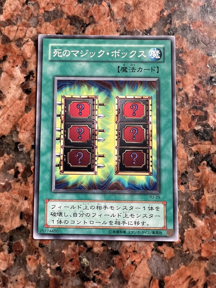 This Yugioh Japanese OCG card is a Common Mystic Box from the Yugi Structure Deck set. It features a spell card type and the card number YU-29. The card is in Japanese language and manufactured by Konami. It is a great addition to any Yu-Gi-Oh! TCG collection.