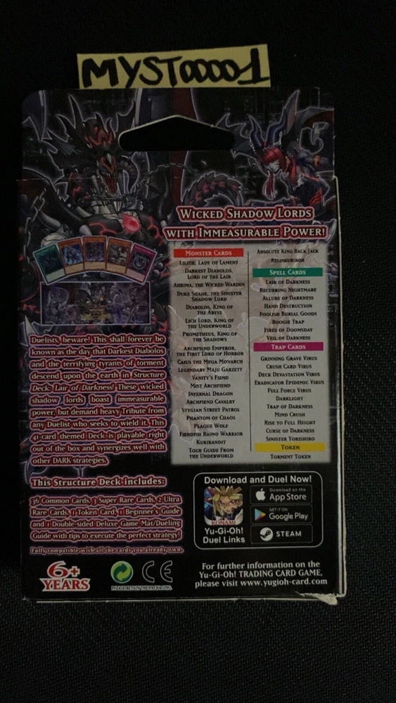 Yu-gi-oh! Structure Deck Lair Of Darkness Anglais OCCASION Scellé 1st Édition. D’OCCASION : Deck de structure Yugioh en anglais ( English ) Lair of Darkness Scellé ( n’a jamais été ouvert) / Sealled Never open Le deck est d’occasion dans un très mauvais état, il présente de nombreux signes d’usures ; il comprend des impacts, pliures, rayures, griffures, coins / côtés abîmés. Envois rapide et soigné sous papier bulles