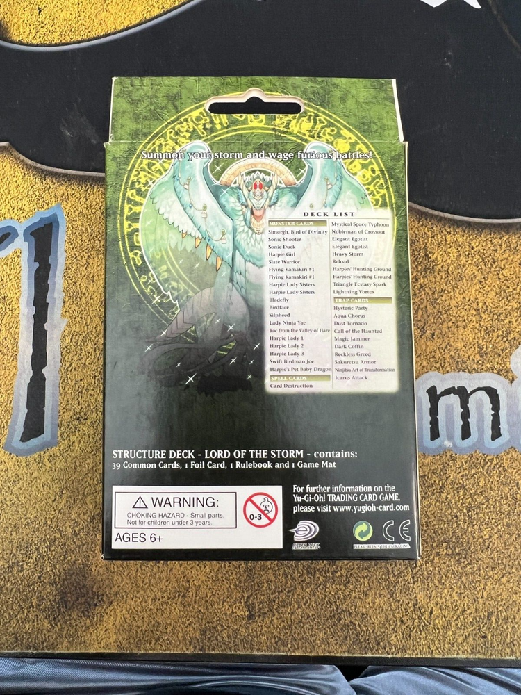 You are bidding on a Yugioh Lord of the Storm Structure Deck !! PLEASE NOTE: This item comes with the Deck and Original Box ONLY! As you can see above, the Box is in pretty decent shape. It has some wear and tear from storage and use over the years. Please examine photos carefully as they are of the actual item you'll receive. The deck has all 40 cards and comes with sleeves. Cards are in Moderately Played condition or better. We are a US Seller! Shipping on all items is FREE inside the United States. For international orders we use eBay's Global Shipping Program. All shipping charges, taxes, fees, etc. for international orders are calculated and collected by eBay at checkout. Please be advised that due to the item's value, direct signature confirmation is required. For any additional info regarding shipping, or for any additional photographs of the item, please contact us. Make sure to check out our other listings for all of your favorite Trading Card Games - including our listings for our Sealed Pokemon boxes! Be sure to check out our Luigi Pikachu box as well! Thanks for shopping at Yeti Gaming!