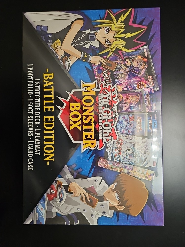 This product is a Yu-Gi-Oh! TCG Monster Box Battle Edition that includes a Structure Deck, a Portfolio, and 50 Sleeves. It is a collectible card game sealed pack that features a box character configur...
