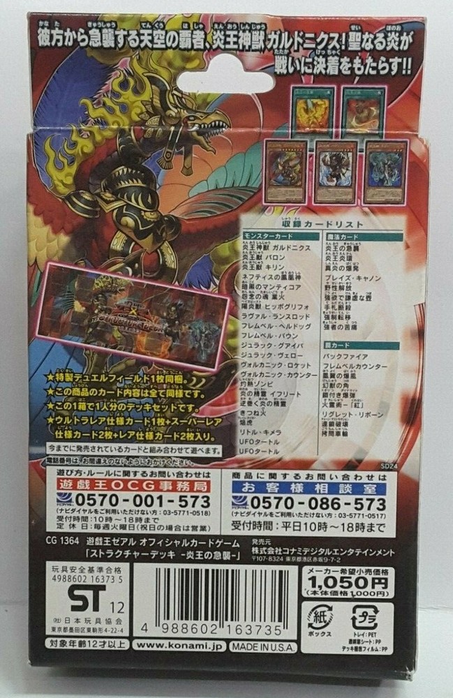 Buying Instruction – Must Read You are now buying: I) Product Description - Yugioh OCG Zexal Structure Deck Onslaught of the Fire Kings SD24 Japanese NEW II) Shipping (By Registered Post)-International/Local (DHL eCommerce or equivalent for international shipping) - FREE SHIPPING III) Tracking number will be provided. IV) Packaging Method - The card will be insert into a sleeve and put into a top loader and put in a bubble envelope. V) Stock Availability - All items are in stock at the time of listing. - In the case of the stock being unavailable due to unforeseen circumstances, you will be able to refund. International Buyers – Please Note: Import duties, taxes, and charges are not included in the item price or shipping cost. These charges are the buyer's responsibility. Please check with your country's customs office to determine what these additional costs will be prior to bidding or buying. Powered by SoldEazy