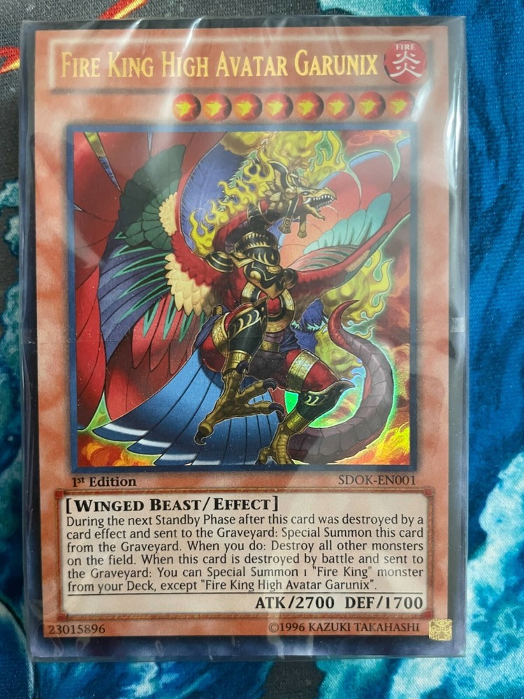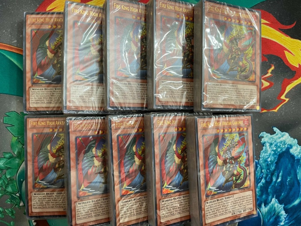 Yugioh Onslaught Of The Fire King 1st Edition Structure Deck New, sealed no box. New still in original internal packaging unopened, exterior cardboard box and playmat has been removed and will not be included. If you order more then 3, I'll package them in a ultra pro storage cube for safer shipping of the cards instead of a standard bubble mailer.