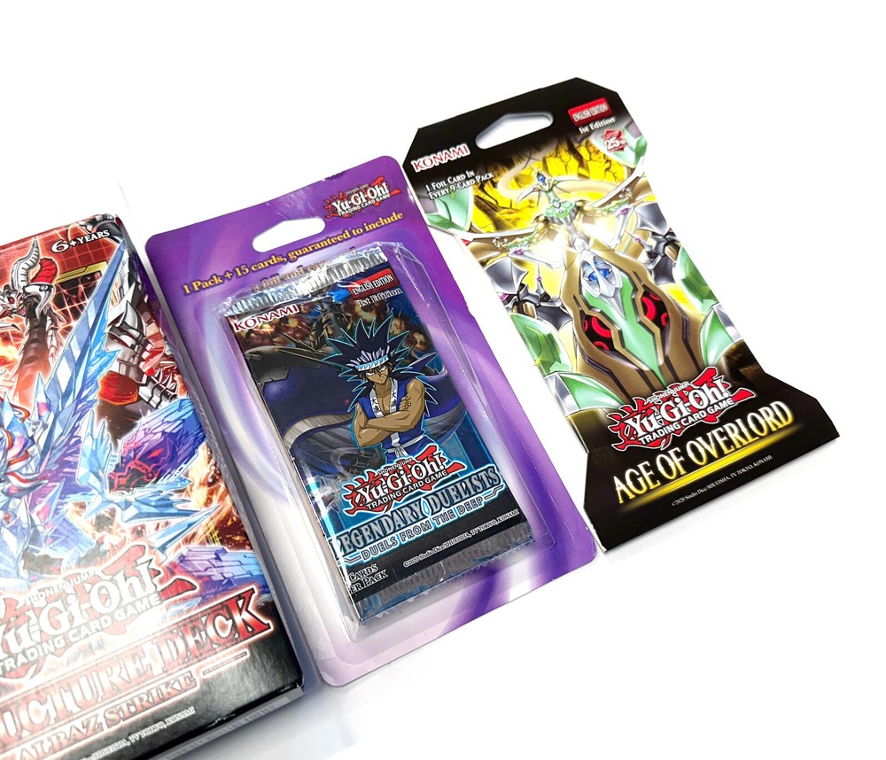You are bidding on HBO's Yu-Gi-Oh! Structure Decks Saga of Blue-Eyes White Dragon + ALBAZ STRIKE Age Of Overlord Booster Legendary Duelist Duels from the Deep Booster Brand NEW & Factory Sealed