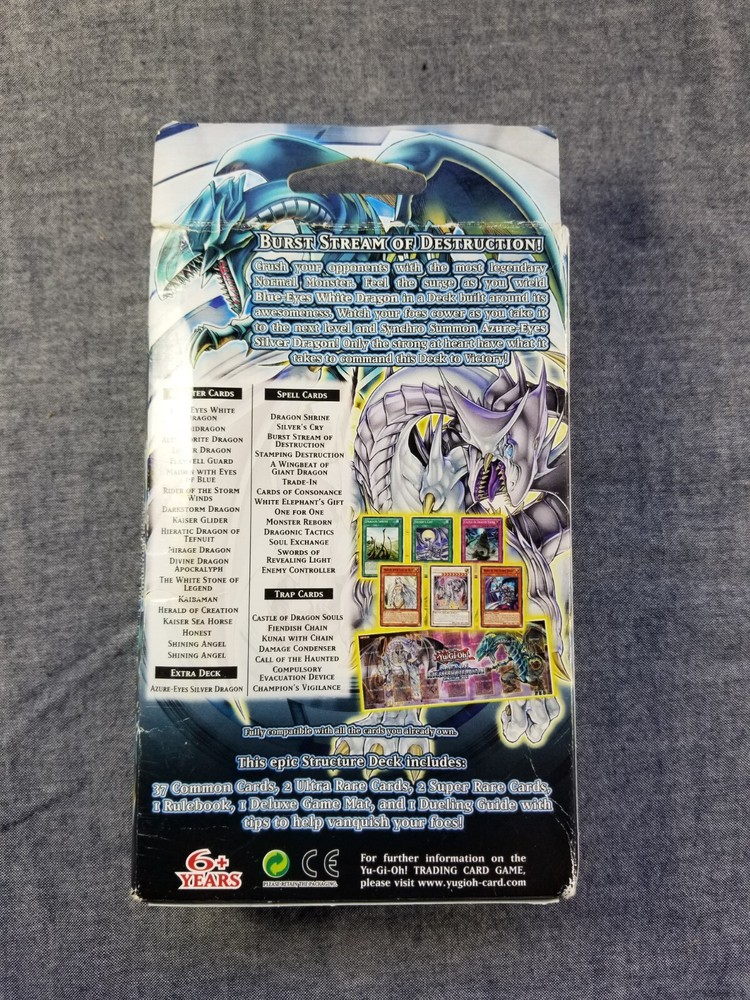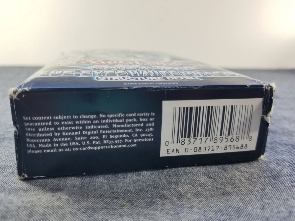 Yugioh Saga of Blue-Eyes White Dragon Structure Deck SDBE. 1st edition. Sealed Never Opened. Box shows some wear.. creases etc but contents inside are untouched. No reason to believe this is a fake repro comparing it to other ones posted. I am no expert but If you suspect that its a fake let me know right away and I will delete the post. Browse more great items from this store : ebay.ca/usr/retroactivegaming Browse even more great items! Visit my other store : ebay.ca/usr/retrodecorstore My pledge to you: I will treat you the way I would want to be treated! If I so much as suspect an item is broken, incomplete or has any kind of problem, I will say so. Shipping: I try to ship packages out within 2 business days of cleared payment. I prefer not to be punished in feedback ratings for high shipping costs or slow delivery, I will do all that I can to assure your item arrives as quickly and cheaply as possible and you cannot expect more from me than that. If for some reason you require a faster means of shipping I will be happy to accommodate you but please expect to pay the higher rate. I will pack your item carefully. If this is an international purchase you may be expected to pay customs imposed by your country. Returns: I accept returns for any reason. Items must be returned in original condition with original tags. I do not accept broken items for return. Returns must be made within 7 days of receiving the package. Shipping is not refunded. I will only refund shipping charges if there was an error on my part, such as a major discrepancy in the listing.