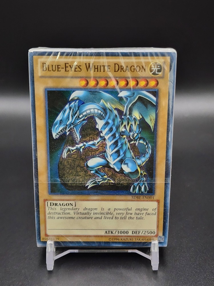 Deck is factory sealed but does have a rip on the backside due to old age. Introducing the Yu-Gi-Oh! Saga of Blue-Eyes White Dragon structure deck, featuring the rare and highly sought-after 7th card. This Japanese-sized deck is factory sealed and comes in a box configuration with a foil finish, making it perfect for collectors and players alike. The deck includes an Angel monster type and an Artifact card type, and is part of the 1st edition of the Yu-Gi-Oh! TCG game. The card is autographed by 5ban Graphics and authenticated by Beckett Authentication Services (BAS). With a rarity of 10000 Secret Rare, this deck is a must-have for any Yu-Gi-Oh! fan. Don't miss out on adding this valuable collectible to your collection!