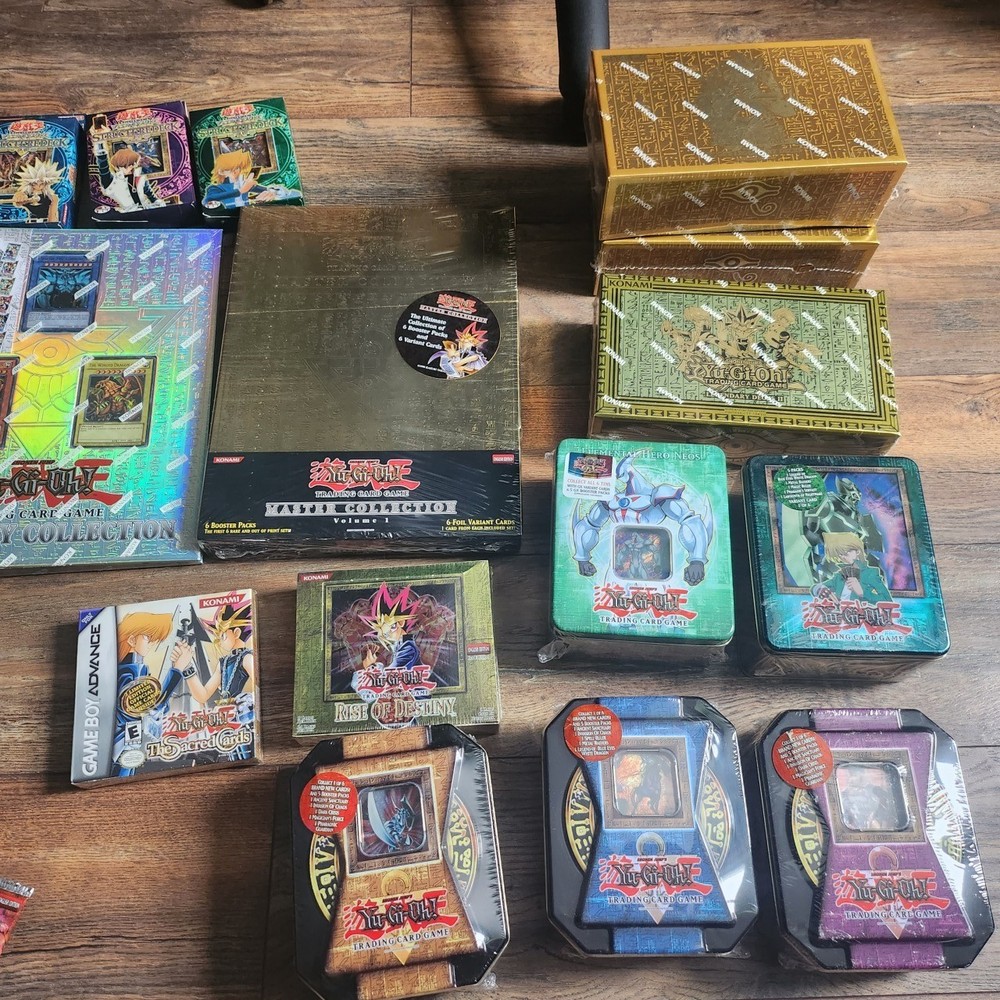 Huge lot of vintage sealed yugioh, price includes everything yoy see in the picture, the booster box is 1st edition hobby box, everything is sealed. Also have lots of rare cards if interested, message with any questions. All the money will go to making my home fit for my family to come back <3