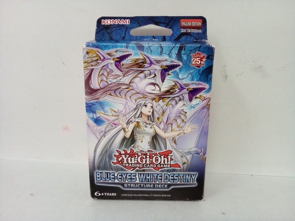 Tap here for more details on Yugioh Structure Deck Blue-Eyes White Destiny 1st Edition - 50 Cards The Yugioh Structure Deck Blue-Eyes White Destiny 1st Edition contains 50 English language cards from the Yu-Gi-Oh! TCG set "BLUE-EYES WHITE DESTINY". Manufactured by Konami in the United States in 2025, this deck is designed for ages 6 and up and features Japanese-sized cards. Perfect for collectors and players alike, this deck offers a strategic and immersive experience for fans of the popular card game.