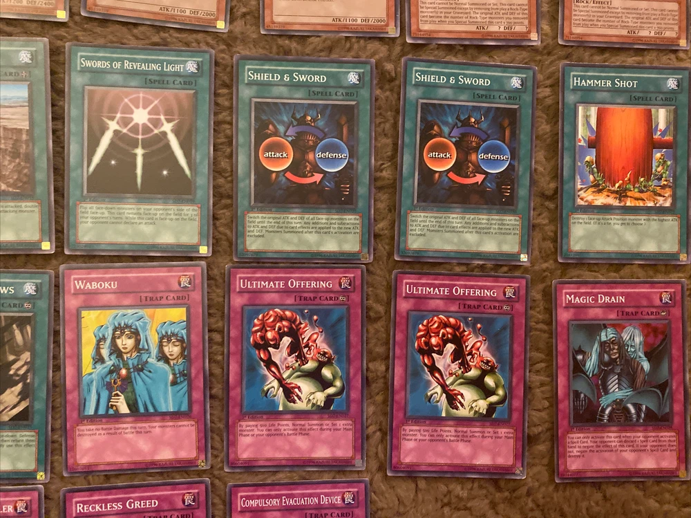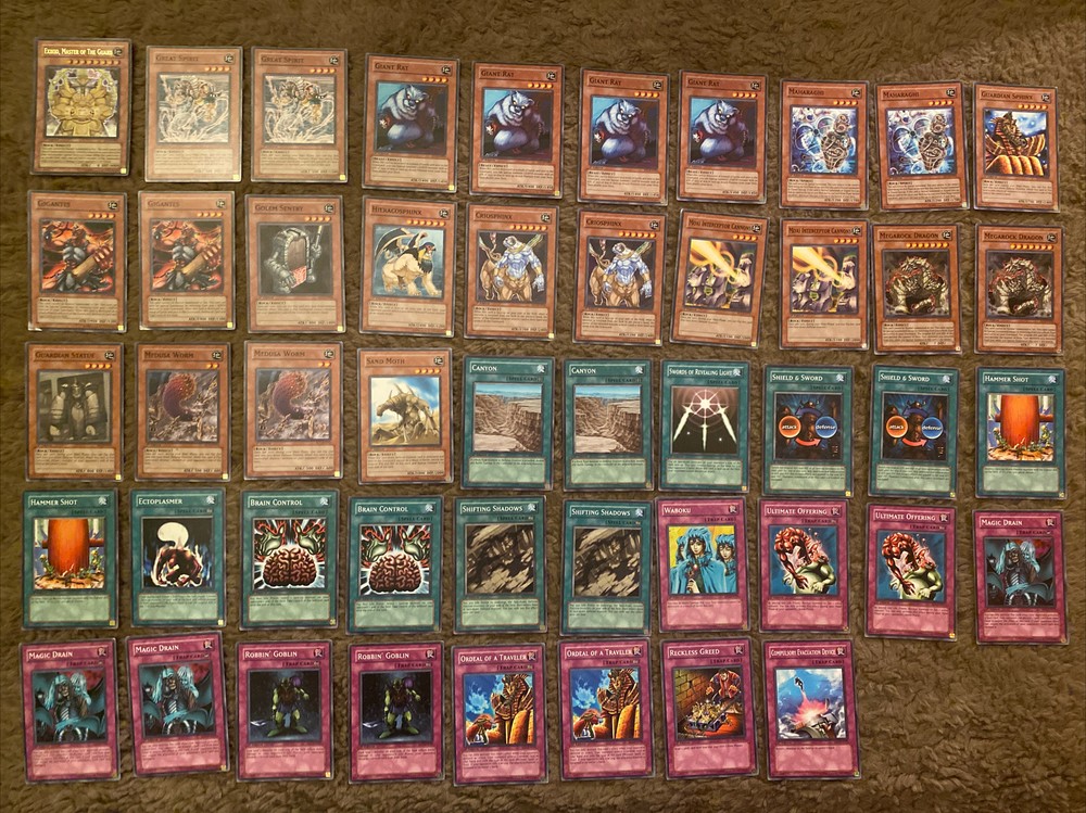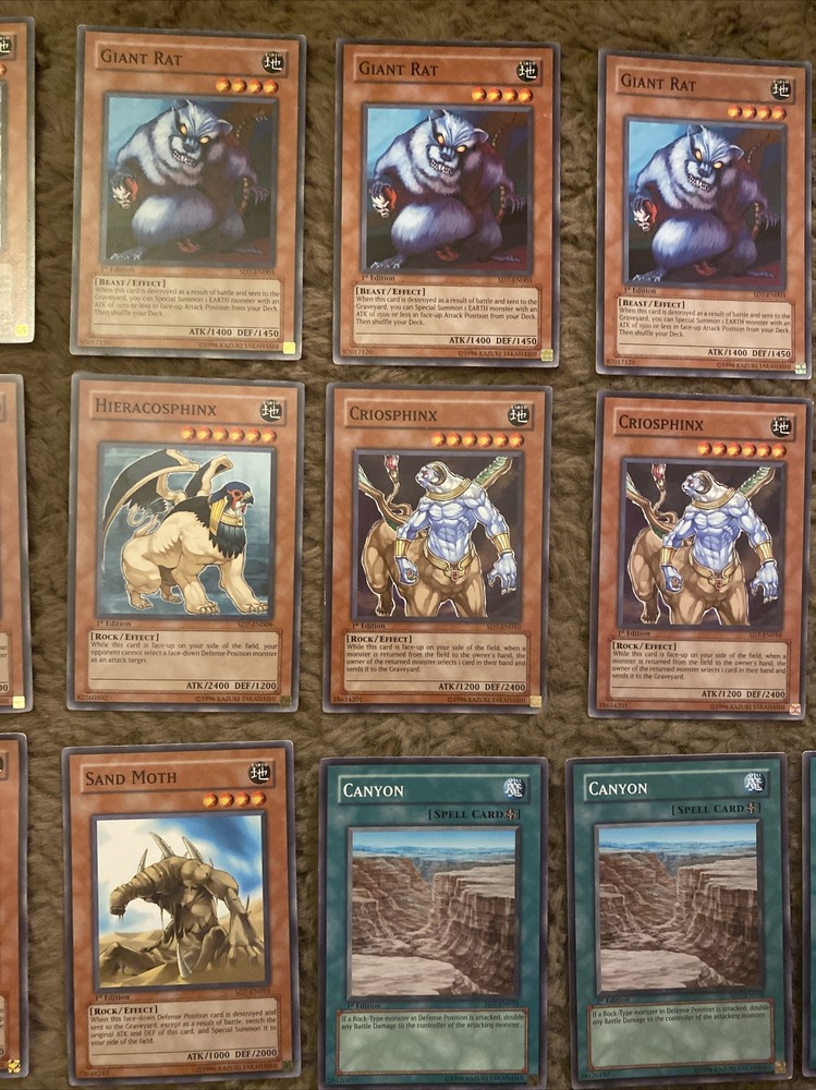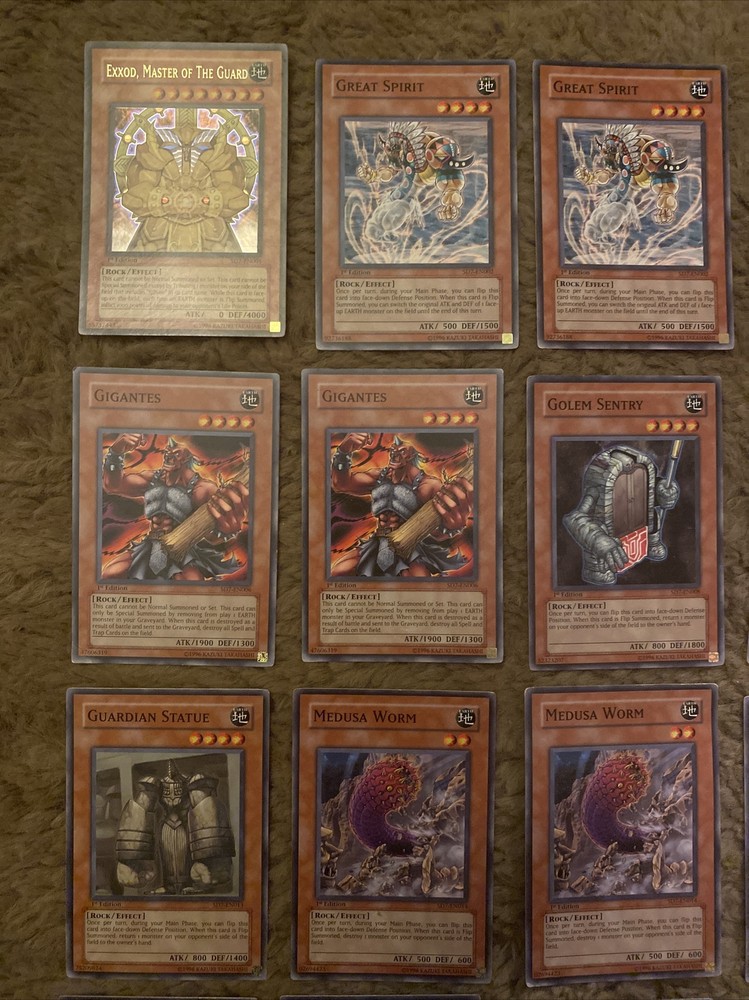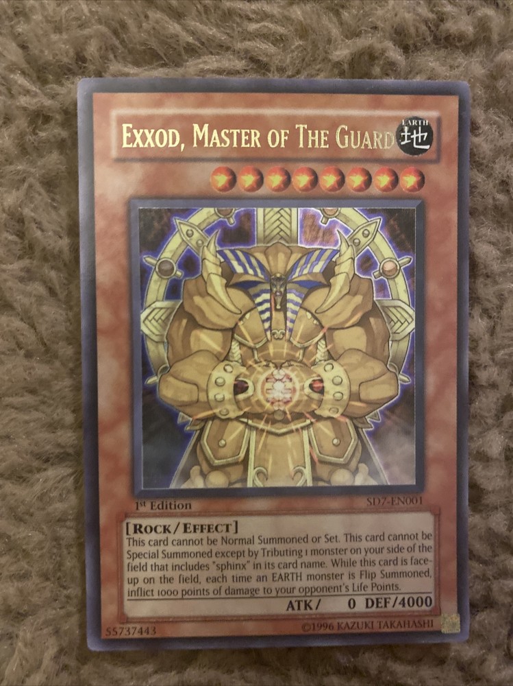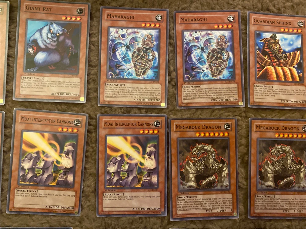 Yugioh Structure Deck Invincible Fortress 48 Cards 1ST EDITION Lot! Includes 1 Ultra Rare Holo, and 47 Commons. Condition ranges from Mint, Lightly Played, Moderately Played and Heavily Played. If you have any questions or need more pictures, please message me! INCLUDES: 1) Exxod, Master of the Guard 1st Edition SD7-EN001 ULTRA RARE 2) 2X Great Spirit 1st Edition SD7-EN002 3) 4X Giant Rat 1st Edition SD7-EN003 4) 2X Maharaghi 1st Edition SD7-EN004 5) Guardian Sphinx 1st Edition SD7-EN005 6) 2X Gigantes 1st Edition SD7-EN006 7) Golem Sentry 1st Edition SD7-EN008 8) Hieracosphinx 1st Edition SD7-EN009 9) 2X Criosphinx 1st Edition SD7-EN010 10) 2X Moai Interceptor Cannons 1st Edition SD7-EN011 11) 2X Megarock Dragon 1st Edition SD7-EN012 12) Guardian Statue 1st Edition SD7-EN013 13) 2X Medusa Worm 1st Edition SD7-EN014 14) Sand Moth 1st Edition SD7-EN015 15) 2X Canyon 1st Edition SD7-EN016 16) Swords of Revealing Light 1st Edition SD7-EN019 17) 2X Shield & Sword 1st Edition SD7-EN020 18) 2X Hammer Shot 1st Edition SD7-EN022 19) Ectoplasmer 1st Edition SD7-EN023 20) 2X Brain Control 1st Edition SD7-EN024 21) 2X Shifting Shadows 1st Edition SD7-EN025 22) Waboku 1st Edition SD7-EN026 23) 2X Ultimate Offering 1st Edition SD7-EN027 24) 3X Magic Drain 1st Edition SD7-EN028 25) 2X Robbin’ Goblin 1st Edition SD7-EN029 26) 2X Ordeal of a Traveler 1st Edition SD7-EN030 27) Reckless Greed 1st Edition SD7-EN031 28) Compulsory Evacuation Device 1st Edition SD7-EN032