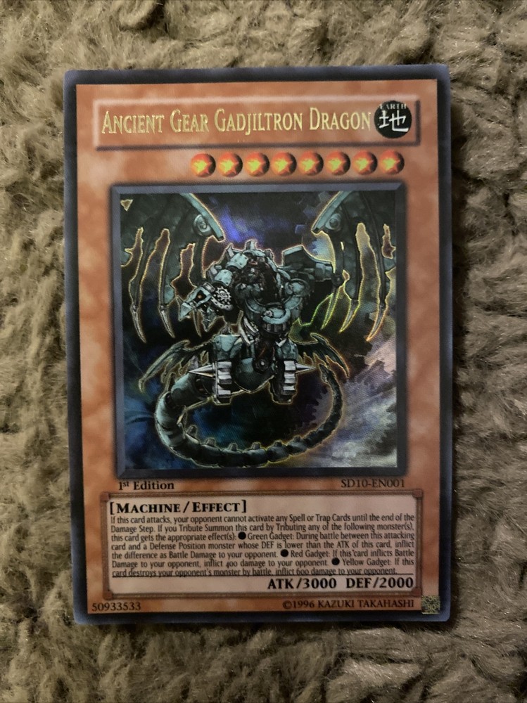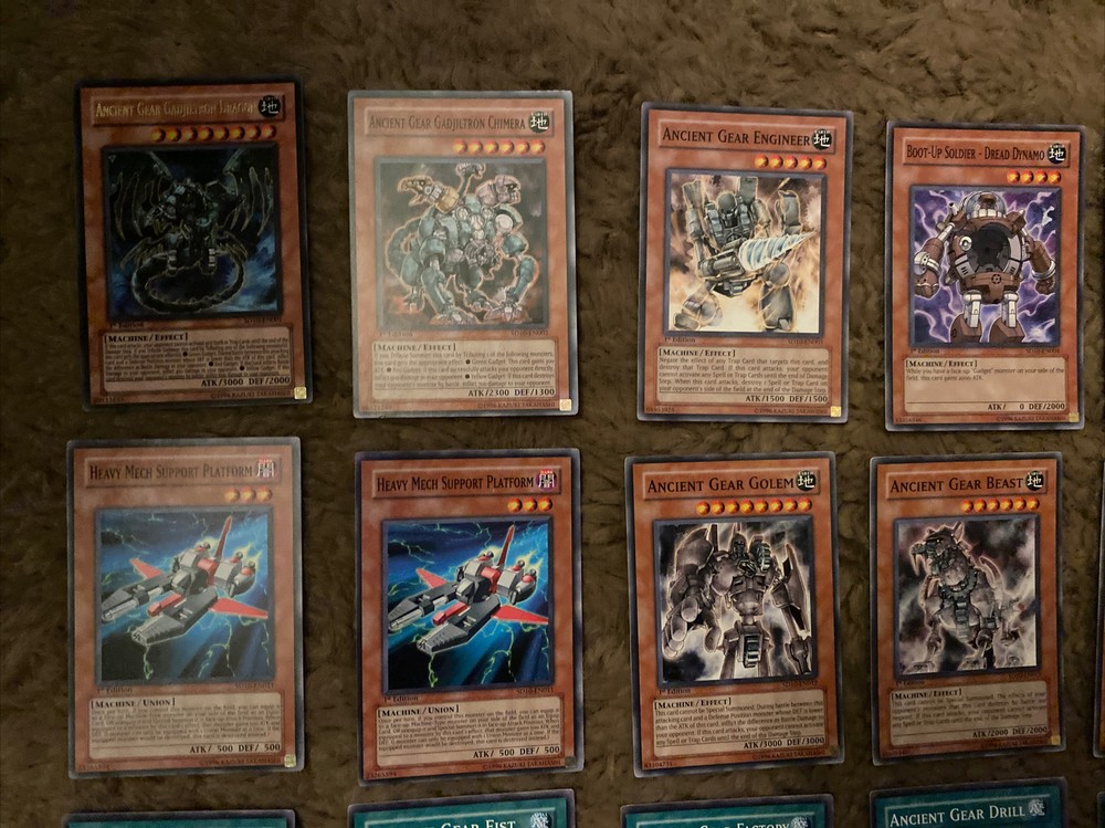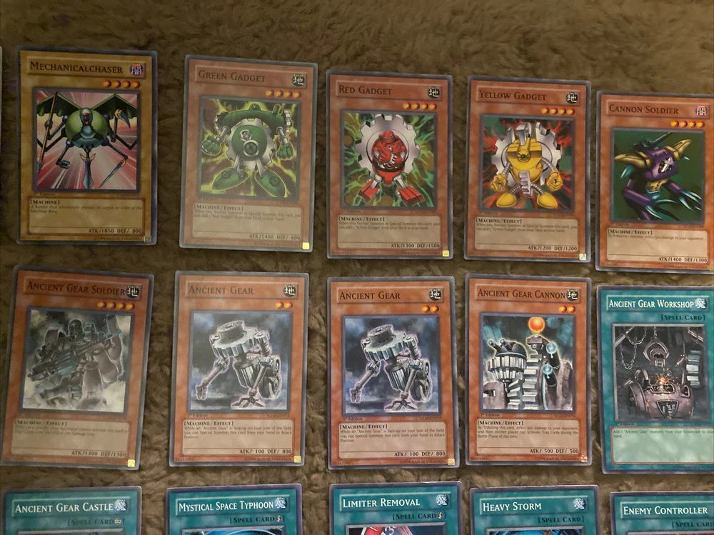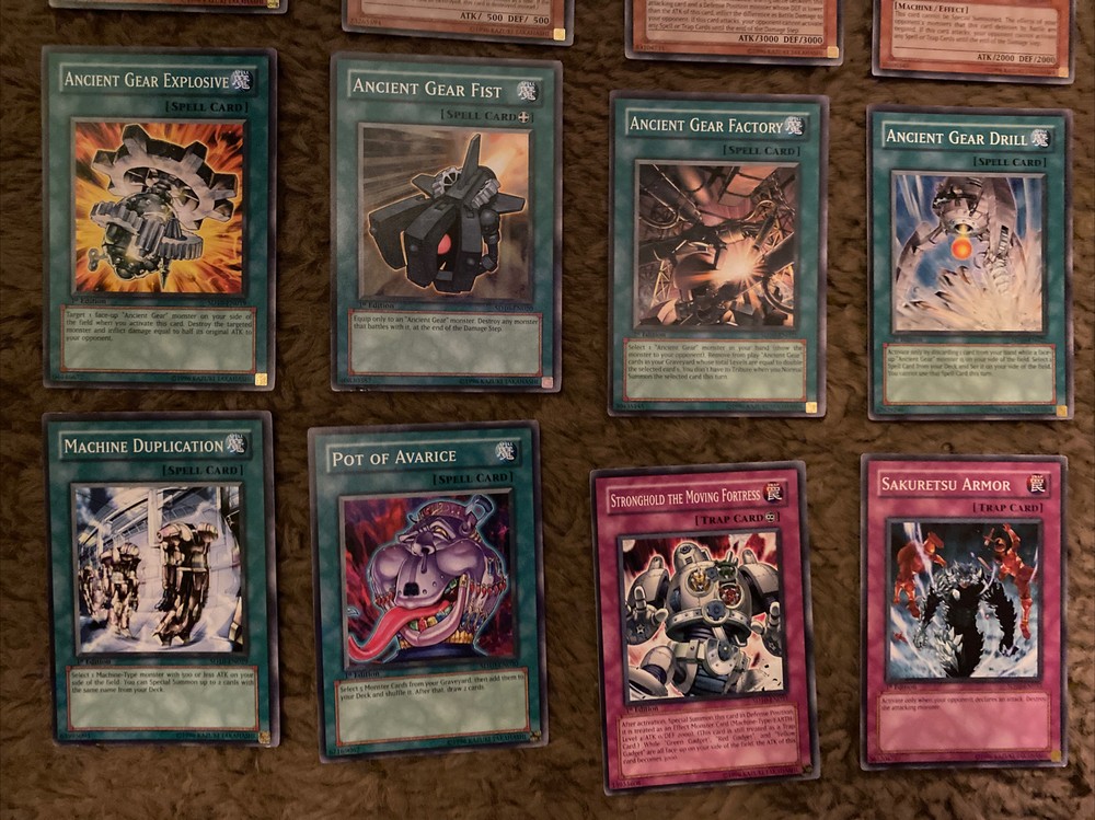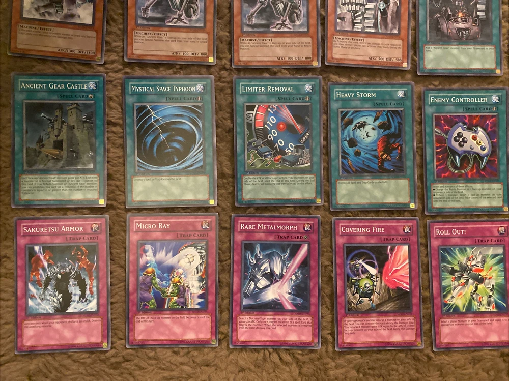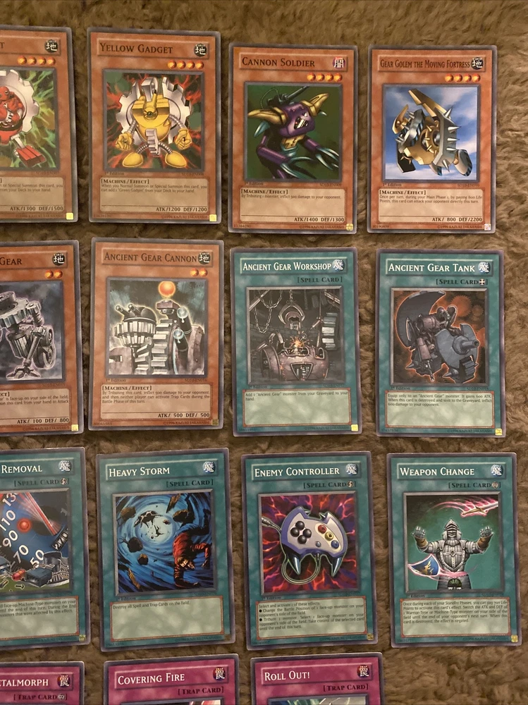 Yugioh Structure Deck Machine Re-Volt 1st Edition 39 Cards Lot! Condition ranges from Mint, Lightly Played, and Moderately Played. If you have any questions or need more pictures, please message me! INCLUDES: 1) Ancient Gear Gadjiltron Dragon 1st Edition SD10-EN001 2) Ancient Gear Gadjiltron Chimera 1st Edition SD10-EN002 3) Ancient Gear Engineer 1st Edition SD10-EN003 4) Boot-Up Soldier - Dread Dynamo 1st Edition SD10-EN004 5) Mechanicalchaser 1st Edition SD10-EN005 6) Green Gadget 1st Edition SD10-EN006 7) Red Gadget 1st Edition SD10-EN007 8) Yellow Gadget 1st Edition SD10-EN008 9) Cannon Soldier 1st Edition SD10-EN009 10) Gear Golem the Moving Fortress 1st Edition SD10-EN010 11) 2X Heavy Mech Support Platform 1st Edition SD10-EN011 12) Ancient Gear Golem 1st Edition SD10-EN012 13) Ancient Gear Beast 1st Edition SD10-EN013 14) Ancient Gear Soldier 1st Edition SD10-EN014 15) 2X Ancient Gear 1st Edition SD10-EN015 16) Ancient Gear Cannon 1st Edition SD10-EN016 17) Ancient Gear Workshop 1st Edition SD10-EN017 18) Ancient Gear Tank 1st Edition SD10-EN018 19) Ancient Gear Explosive 1st Edition SD10-EN019 20) Ancient Gear Fist 1st Edition SD10-EN020 21) Ancient Gear Factory 1st Edition SD10-EN021 22) Ancient Gear Drill 1st Edition SD10-EN022 23) Ancient Gear Castle 1st Edition SD10-EN023 24) Mystical Space Typhoon 1st Edition SD10-EN024 25) Limiter Removal 1st Edition SD10-EN025 26) Heavy Storm 1st Edition SD10-EN026 27) Enemy Controller 1st Edition SD10-EN027 28) Weapon Change 1st Edition SD10-EN028 29) Machine Duplication 1st Edition SD10-EN029 30) Pot of Avarice 1st Edition SD10-EN030 31) Stronghold the Moving Fortress 1st Edition SD10-EN031 32) 2X Sakuretsu Armor 1st Edition SD10-EN033 33) Micro Ray 1st Edition SD10-EN034 34) Rare Metalmorph 1st Edition SD10-EN035 35) Covering Fire 1st Edition SD10-EN036 36) Roll Out! 1st Edition SD10-EN037