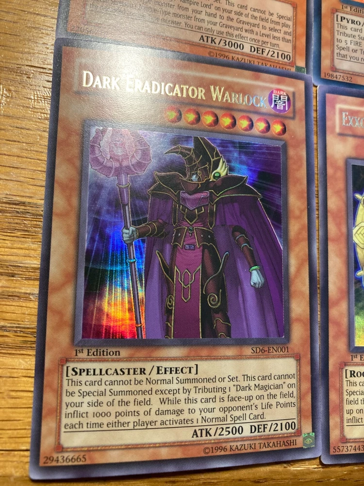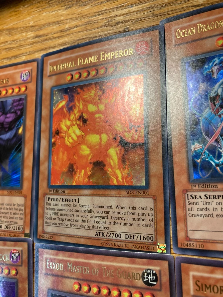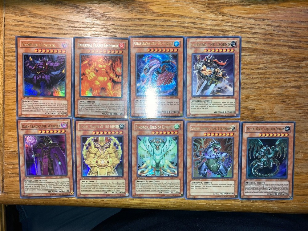 This is a lot of 9 cards from Yugioh structure decks 2-10. All cards are 1st edition and in Nearmint to Lightly Played Condition. You are bidding/buying nine (9) cards. If you would like additional pictures, just ask. _________________________________________________________________________________________________________ Please check out my other listing @ http://www.ebay.com/usr/lechung88 I ship all cards in a penny sleeve put into a top-loader and put into a standard envelope. If you have any question or concerns, please feel free to send me a personal message using the e-bay system. Thanks! !NO INTERNATIONAL SHIPPING OR SALES! (Including Canada)