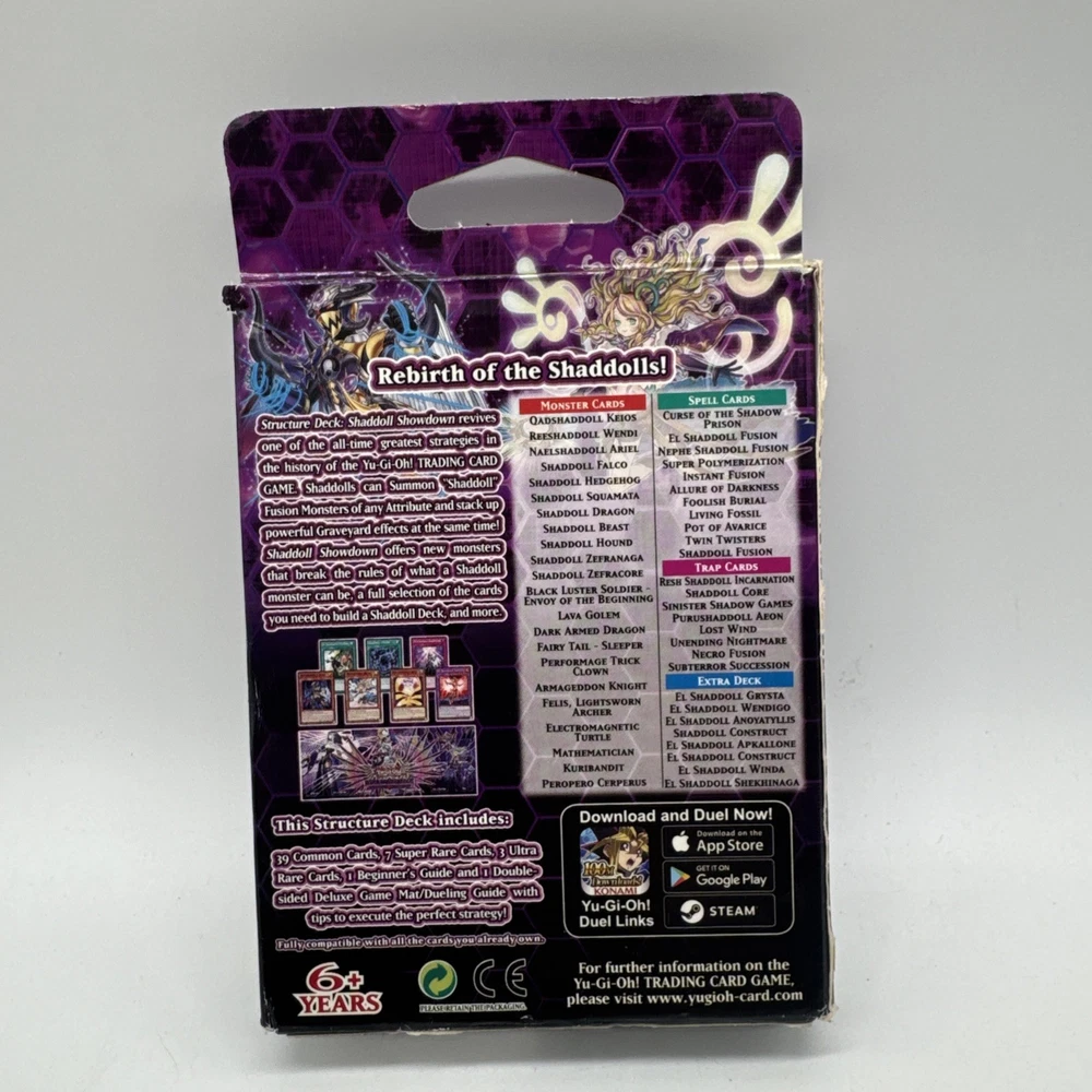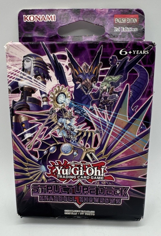 See photos for condition. Box has noticeable external wear as shown. The product is a factory sealed Yu-Gi-Oh! TCG Shaddoll Showdown structure deck, featuring a Dragon archetype with 49 English cards manufactured by Konami. This 1st edition deck, suitable for ages 6 and up, includes cards in Japanese size and is part of Starter Deck series from 1996. Perfect for collectors and players alike, this structure deck offers a ready-to-play collection from the popular Yu-Gi-Oh! franchise.