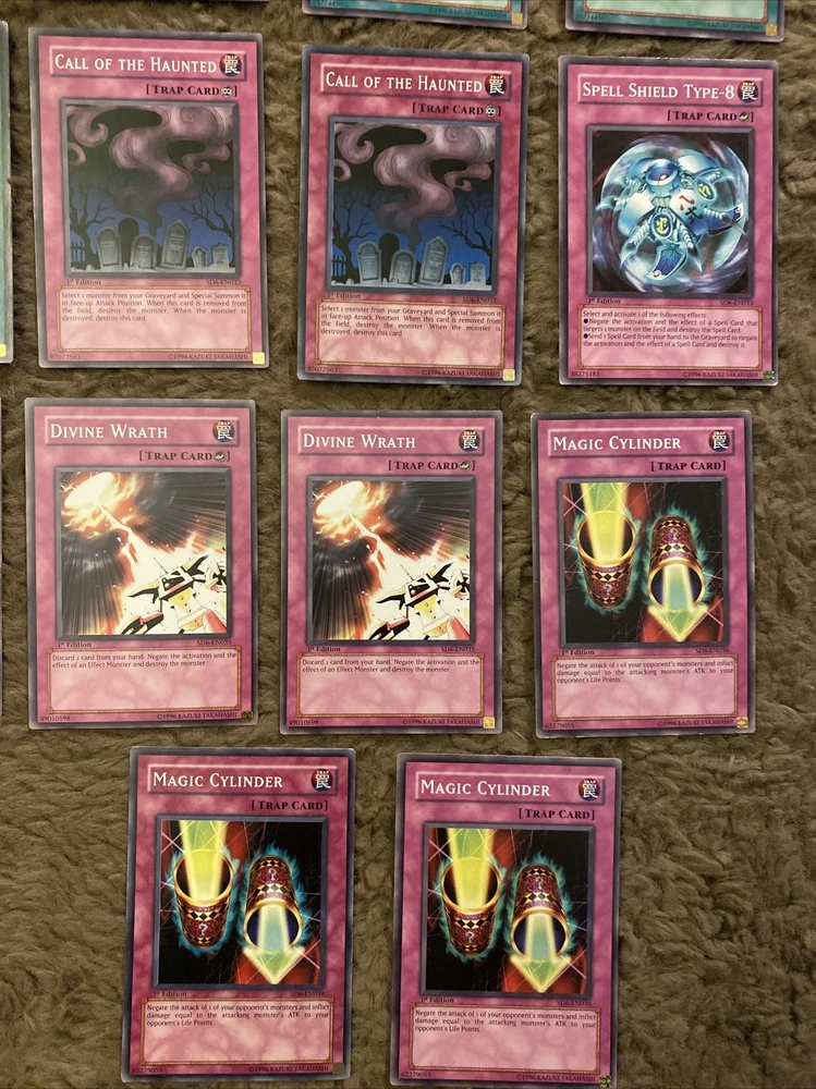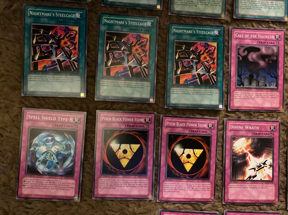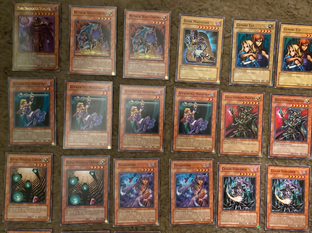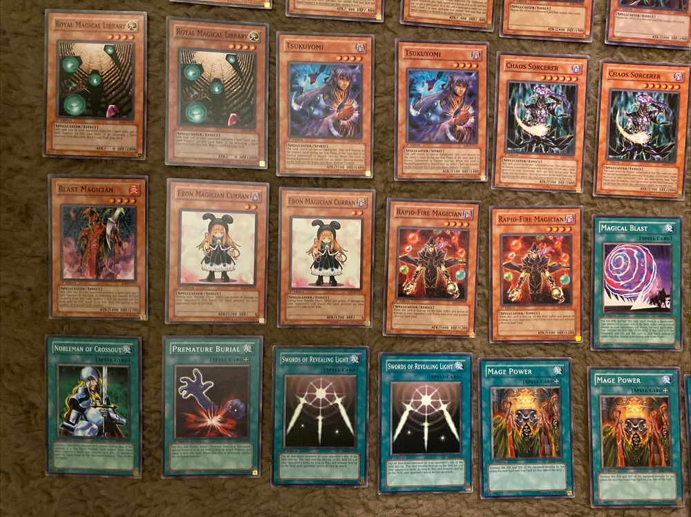 Yugioh Structure Deck Spellcaster's Judgment 1st Edition 76 Card Lot! Includes 1 Ultra Rare Holo, and 75 Commons. Condition ranges from Mint to Near Mint/Lightly Played. If you have any questions or need more pictures, please message me! INCLUDES: 1) Dark Eradicator Warlock 1st Edition SD6-EN001 ULTRA RARE 2) 2X Mythical Beast Cerberus 1st Edition SD6-EN002 3) Dark Magician 1st Edition SD6-EN003 4) 2X Gemini Elf 1st Edition SD6-EN004 5) 2X Magician of Faith 1st Edition SD6-EN005 6) Skilled Dark Magician 1st Edition SD6-EN006 7) 5X Apprentice Magician 1st Edition SD6-EN007 8) 3X Chaos Command Magician 1st Edition SD6-EN008 9) 2X Breaker The Magical Warrior 1st Edition SD6-EN009 10) 3X Royal Magical Library 1st Edition SD6-EN010 11) 2X Tsukuyomi 1st Edition SD6-EN011 12) 3X Chaos Sorcerer 1st Edition SD6-EN012 13) 2X White Magician Pikeru 1st Edition SD6-EN013 14) 2X Blast Magician 1st Edition SD6-EN014 15) 2X Ebon Magician Curran 1st Edition SD6-EN015 16) 2X Rapid-Fire Magician 1st Edition SD6-EN016 17) 2X Magical Blast 1st Edition SD6-EN017 18) Mystical Space Typhoon 1st Edition SD6-EN018 19) 3X Nobleman of Crossout 1st Edition SD6-EN019 20) Premature Burial 1st Edition SD6-EN020 21) 2X Swords of Revealing Light 1st Edition SD6-EN021 22) 2X Mage Power 1st Edition SD6-EN022 23) Heavy Storm 1st Edition SD6-EN023 24) 2X Diffusion Wave-Motion 1st Edition SD6-EN024 25) 2X Reload 1st Edition SD6-EN025 26) Dark Magic Attack 1st Edition SD6-EN026 27) Spell Absorption 1st Edition SD6-EN027 28) 3X Lightning Vortex 1st Edition SD6-EN028 29) 4X Magical Dimension 1st Edition SD6-EN029 30) 2X Mystic Box 1st Edition SD6-EN030 31) 3X Nightmare’s Steelcage 1st Edition SD6-EN031 32) 2X Call of the Haunted 1st Edition SD6-EN032 33) 2X Spell Shield Type-8 1st Edition SD6-EN033 34) 2X Pitch-Black Power Stone 1st Edition SD6-EN034 35) 2X Divine Wrath 1st Edition SD6-EN035- 36) 3X Magic Cylinder 1st Edition SD6-EN036