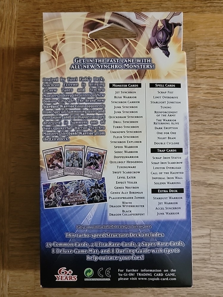 This deck is a must-have for Synchro fans! Packed with powerful cards like Junk Speeder and Stardust Synchron, it makes summoning boss monsters a breeze. The 1st edition adds collectible value, and the ready-to-play structure is perfect for both beginners and competitive duelists. The combos are insane—great for reviving classic Yu-Gi-Oh! strategies with a modern twist. Totally worth it!