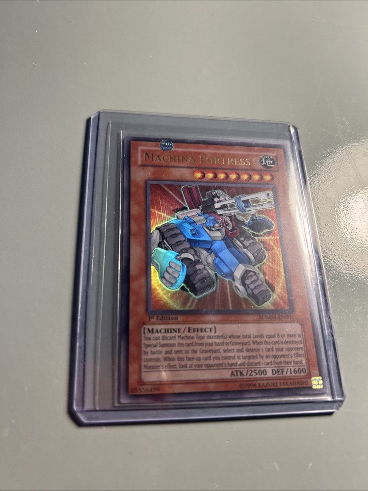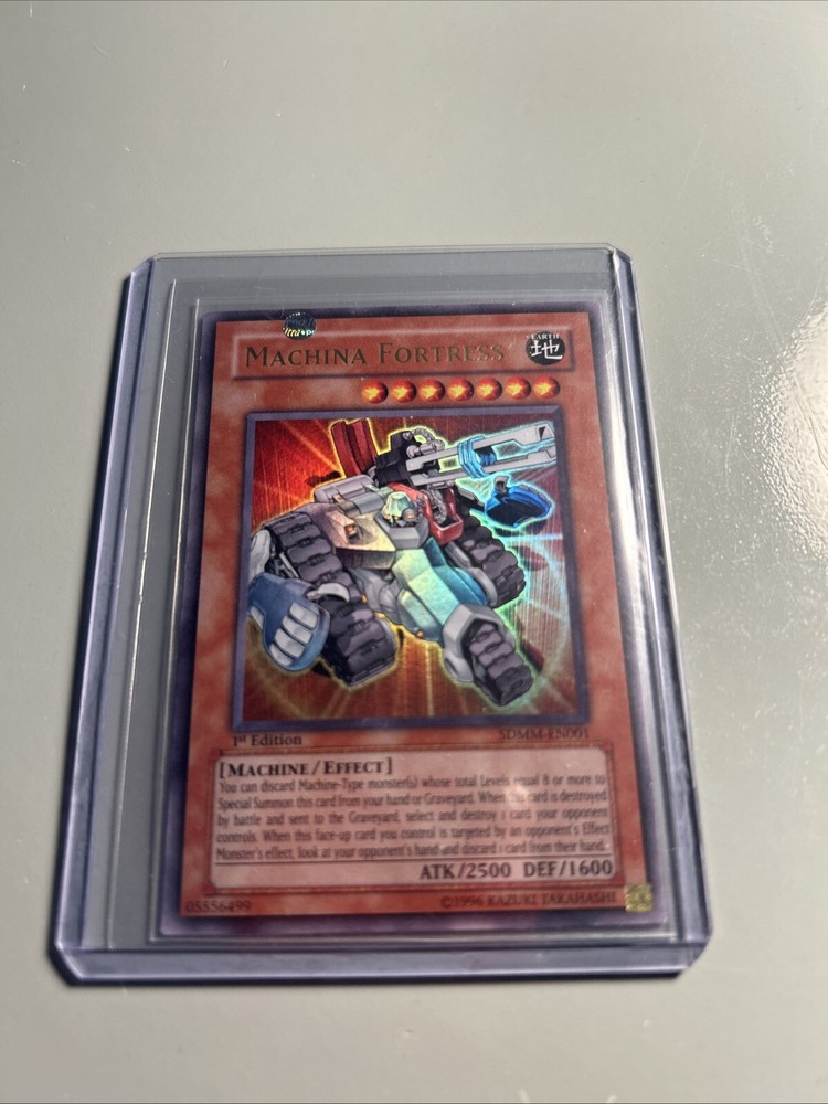 Elevate your Yu-Gi-Oh! TCG collection with the formidable Machina Fortress, an Ultra Rare card from the Structure Deck: Machina Mayhem-1st Edition set. Boasting an impressive 2500 attack power and 1600 defense toughness, this Machine-type card is a force to be reckoned with. Its holographic finish captures the essence of its power, making it a standout in any collection or deck. SDMM-EN001 is not just a powerful effect card, but it also holds the distinction of being a 1st Edition release, coveted by collectors and players alike. Manufactured in the United States by Konami and designed for players aged 6 and up, this English language card is a must-have for any serious player or collector seeking to enhance their game with a touch of rarity and strength.